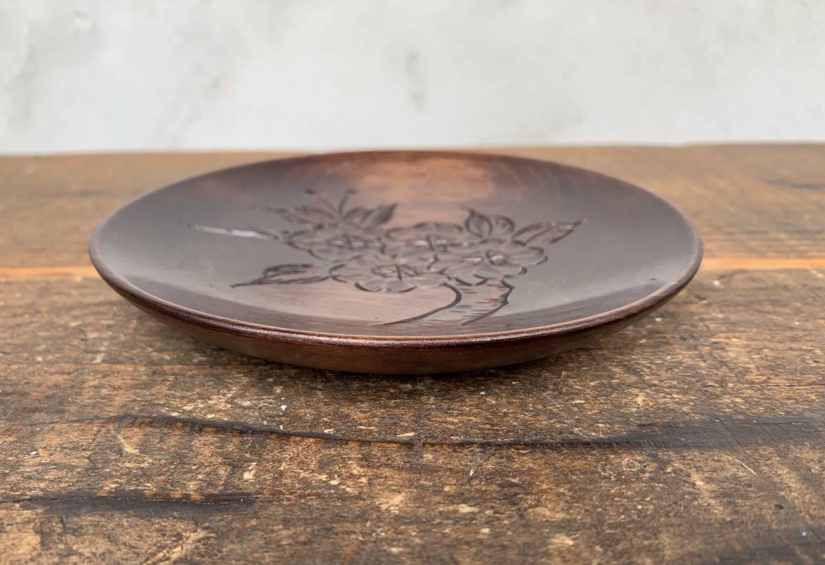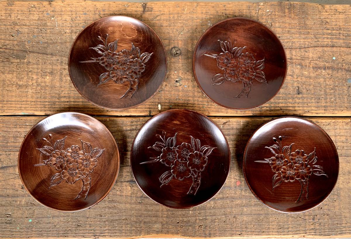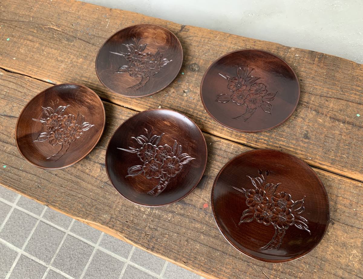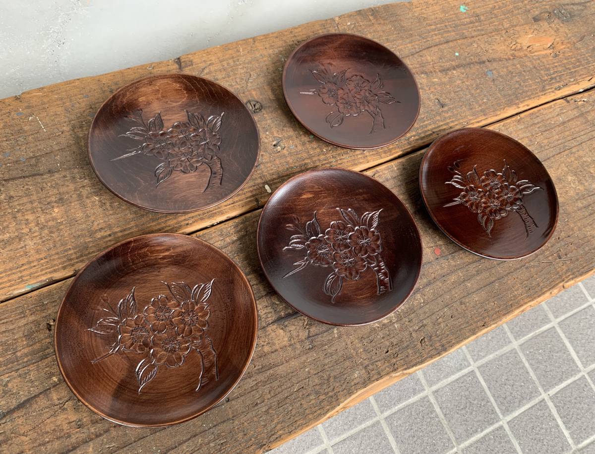★工芸品★木製★木彫★ウッド★花柄★フラワー★盛皿★銘々皿★菓子皿★小皿★5客★セット★食器★