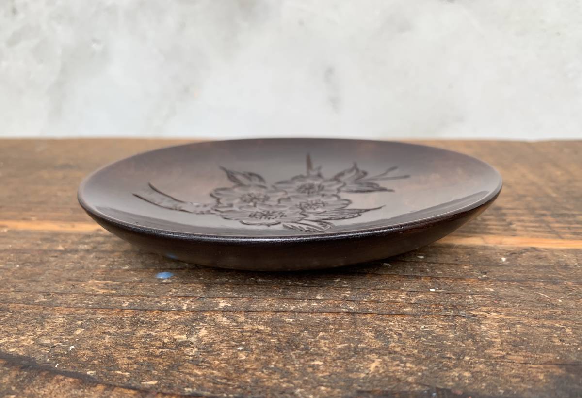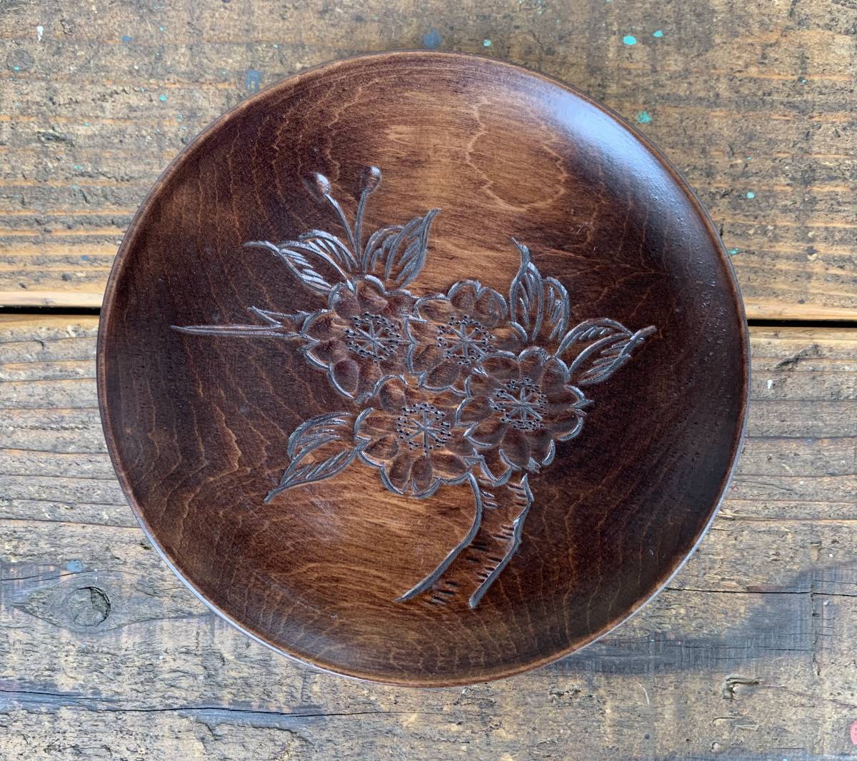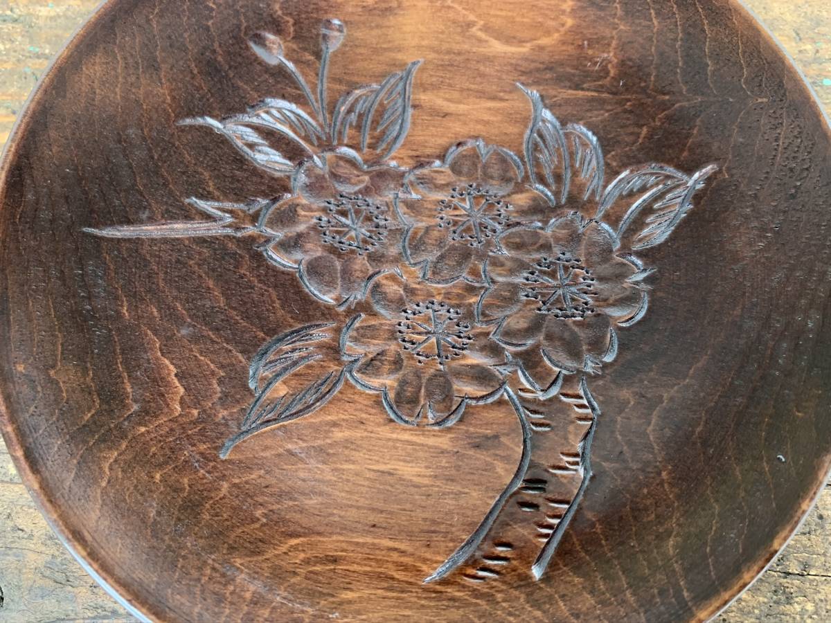 ★工芸品★木製★木彫★ウッド★花柄★フラワー★盛皿★銘々皿★菓子皿★小皿★5客★セット★食器★