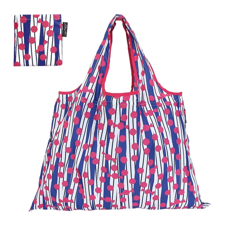 撥水加工が施された、かわいいテキスタイルデザインのエコバッグです。
