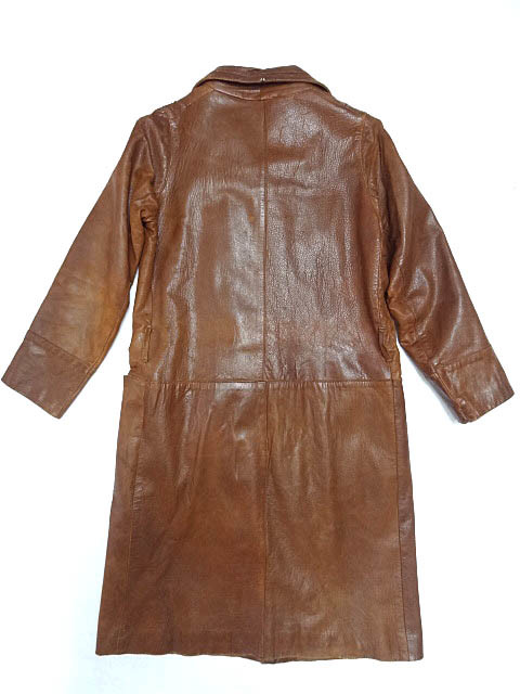 ビンテージ 希少 珍品 10S 20S 30S レディース オール レザー ドライビング ダスター ロング コート 2WAY 襟 デザイン 革 レア 茶 ブラウン
