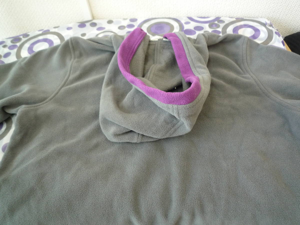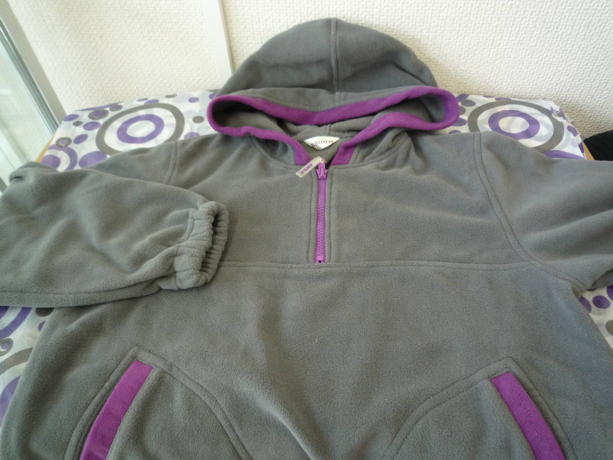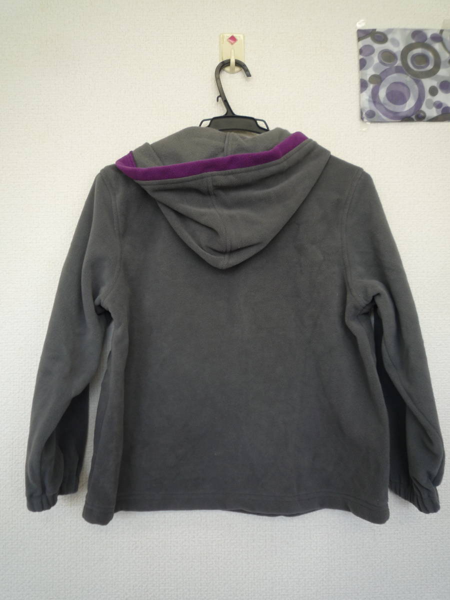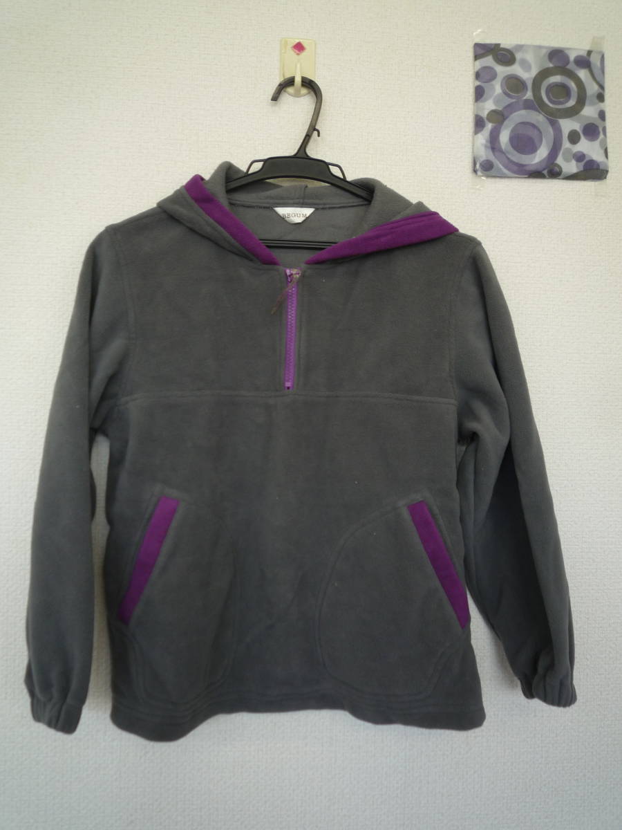 ★ 子供 BEGUM < 140 > フリース パーカー プルオーバー長袖トップス グレー系+パープル ジップアップ 袖口ゴム入 ポケット付