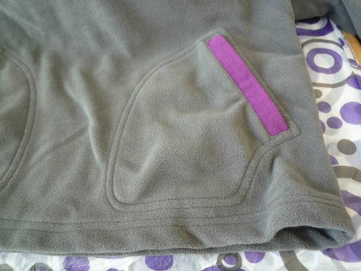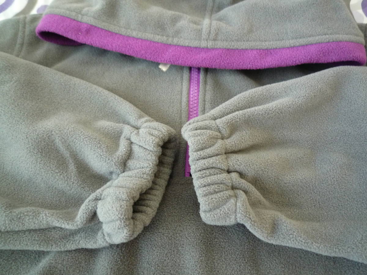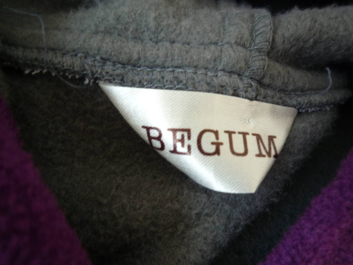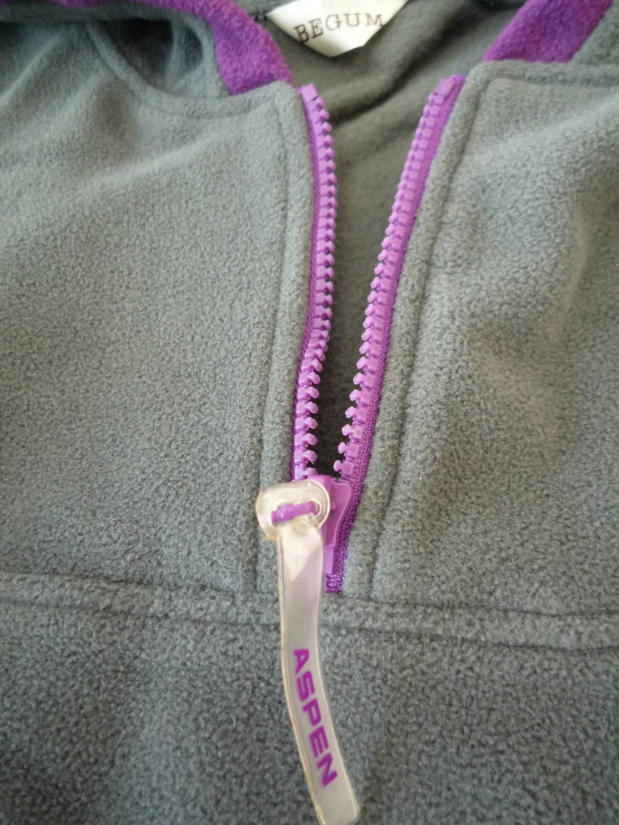★ 子供 BEGUM < 140 > フリース パーカー プルオーバー長袖トップス グレー系+パープル ジップアップ 袖口ゴム入 ポケット付