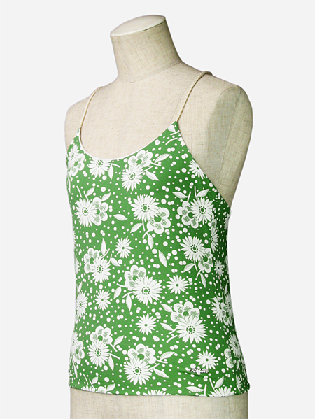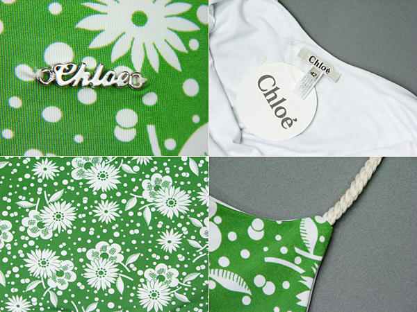 特徴 | とても涼しげな、緑の花柄のキャミソールです。リゾート地に行く時などに最適です。向かって右下に、クロエのロゴプレートが付いています。 |