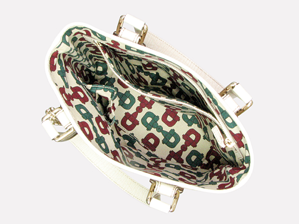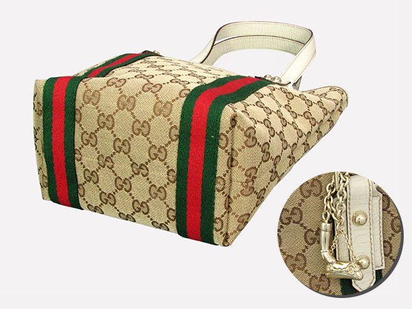 | 特徴 | グッチの中でも、大人気の商品です。赤と緑のラインが入っている、ベージュwg柄のトートバッグです。内側に、ファスナー式ポケット1、携帯電話入れ用ポケット1あり。可愛いシルバーのチャームがアクセントです。チャームは、ブーツとバッグの二つが付いています。内側は、カラフルな柄です。 | ||