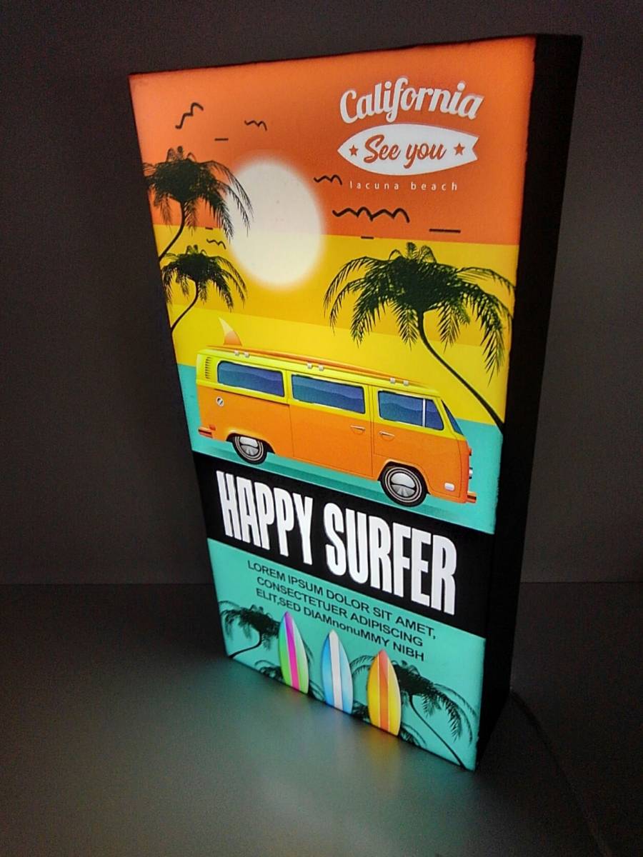 カリフォルニア サーフィン サーファー 西海岸 南国 ハワイ ワーゲンバス ランプ 看板 置物 アメリカン雑貨 ライトBOX 電飾看板 電光看板