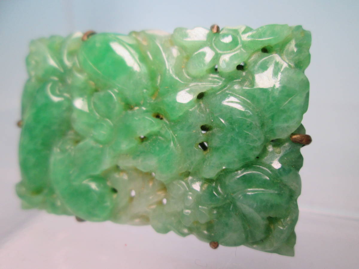 【江月】アンティーク・本翡翠 大振りな花と実彫刻の帯留め 12g
