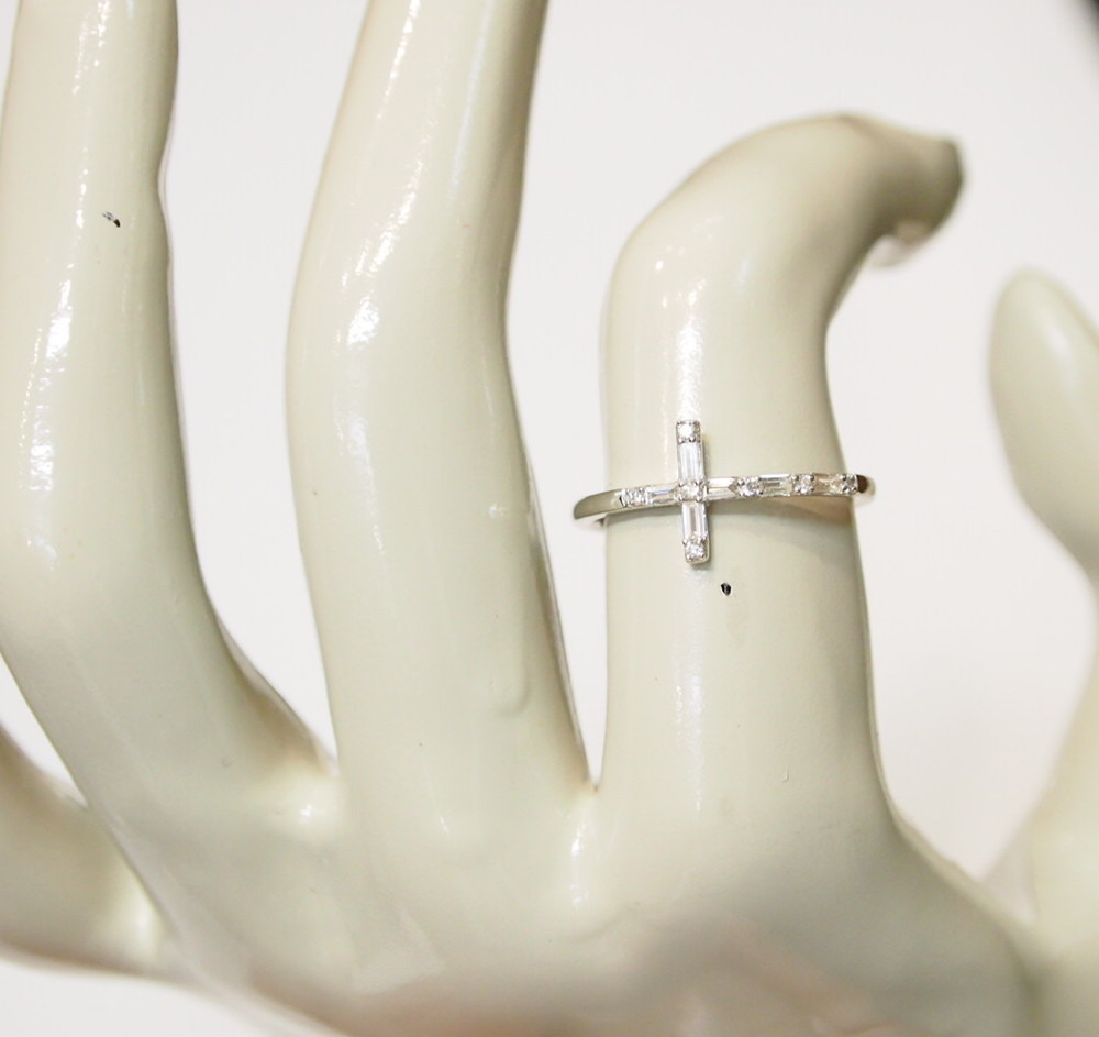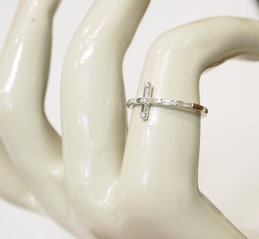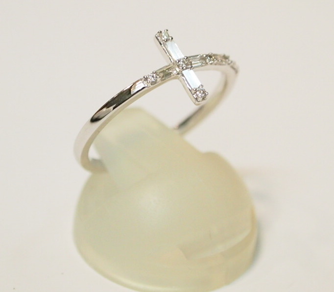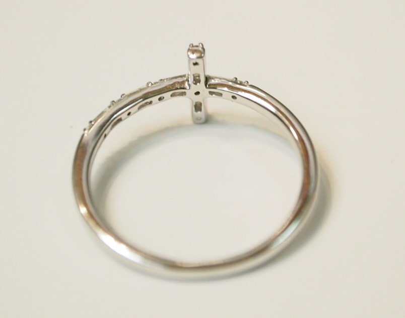 18金ホワイトゴールド 天然 ダイヤ 0.15カラット クロス モチーフ デザイン スリム リング です。