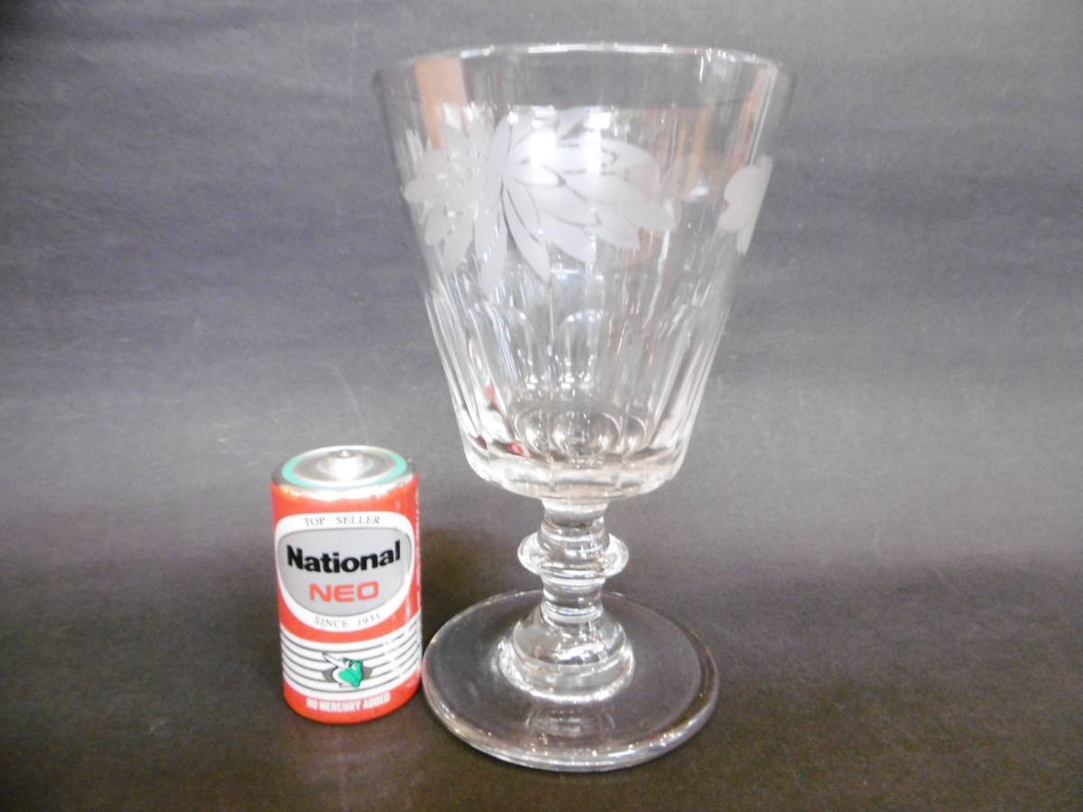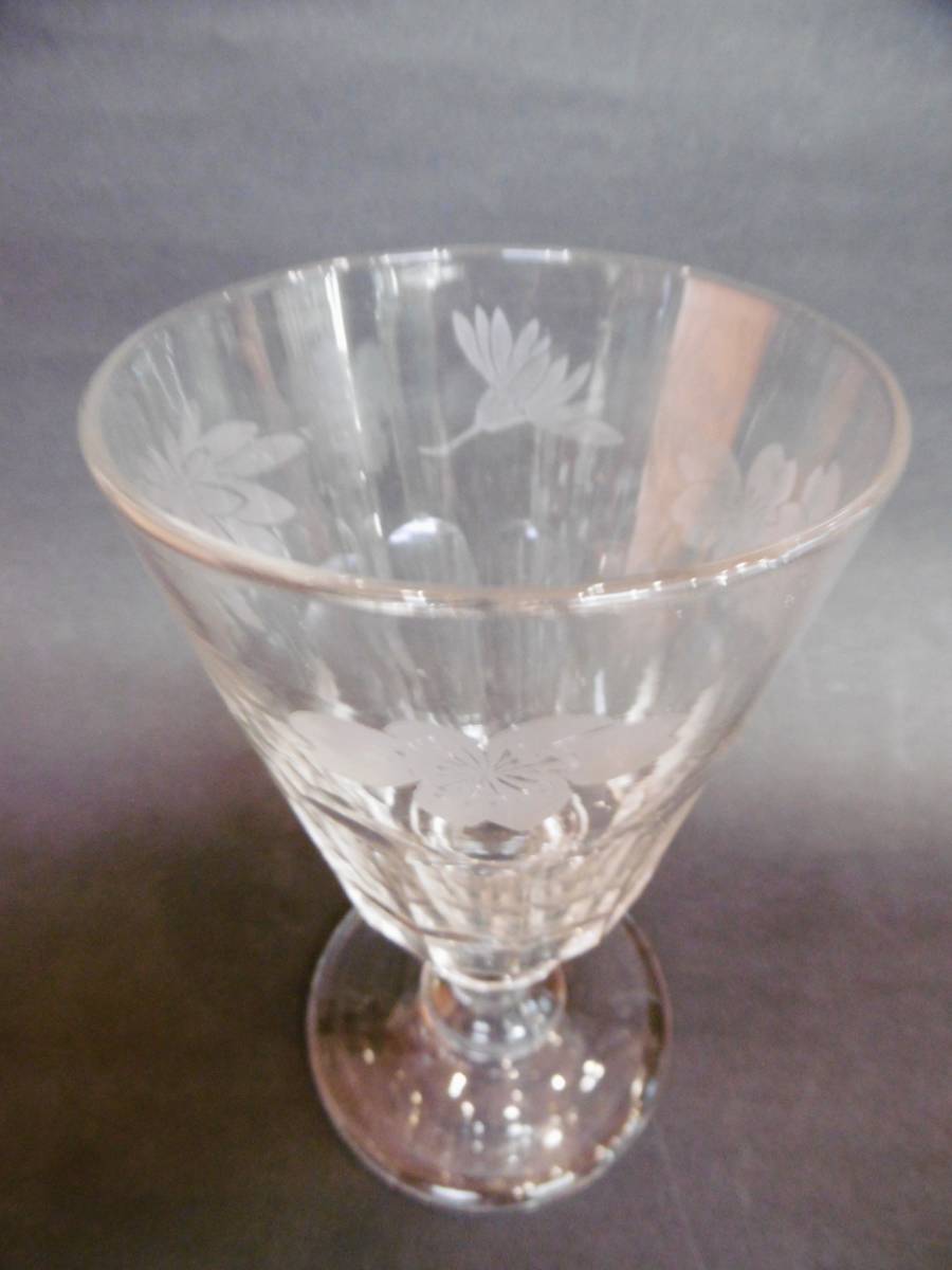 | 当時物★花模様/高台付きガラスコップ/昔硝子雑貨昭和レトロ★ | |