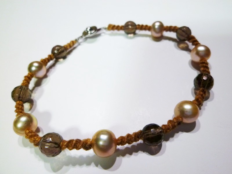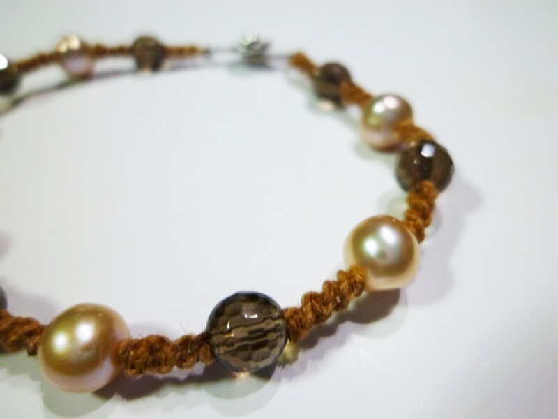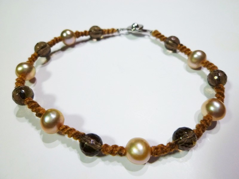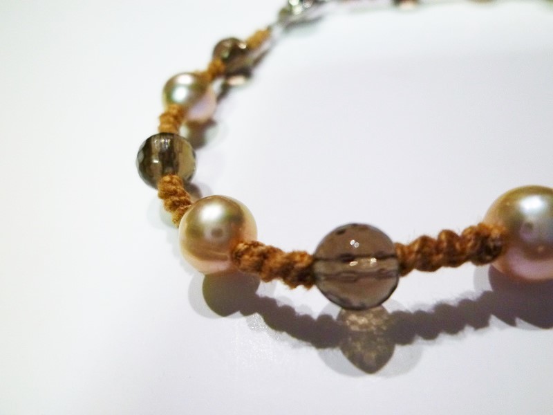 淡水パール スモーキークォーツ マクラメ ブレスレット