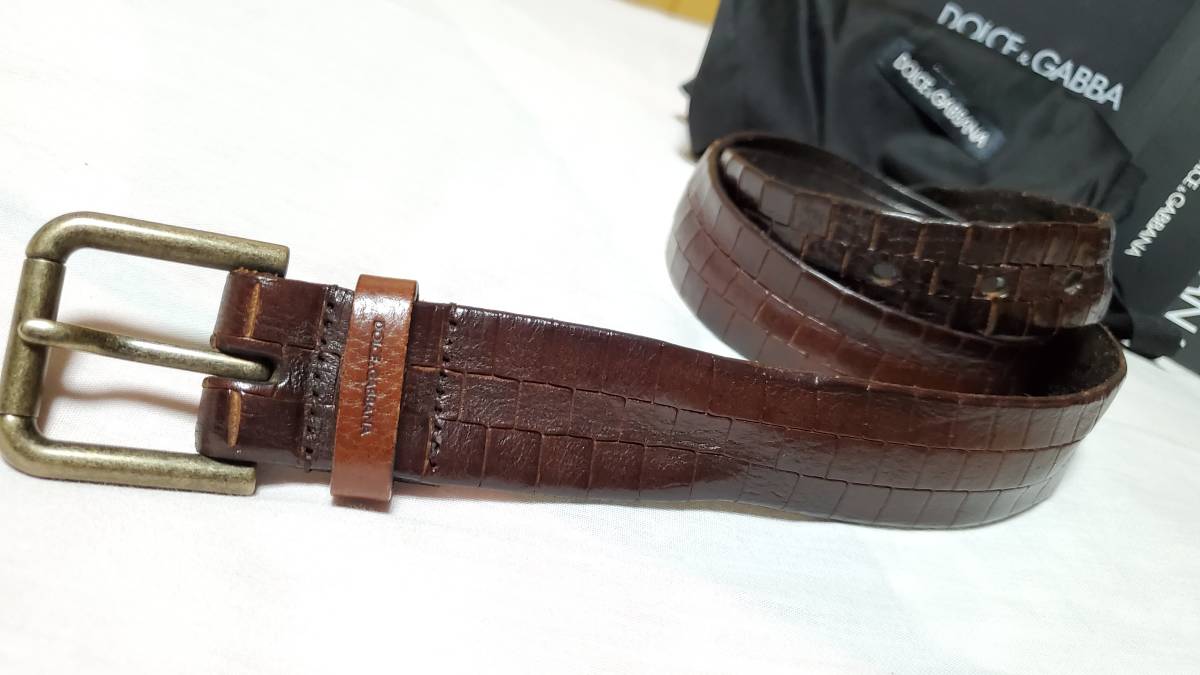 正規 DOLCE&GABBANAドルチェ&ガッバーナ D&G ロゴ スクエアバックルベルト茶 クラシック イントレチャートレザー×オールドゴールド 付属有