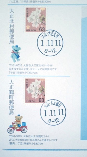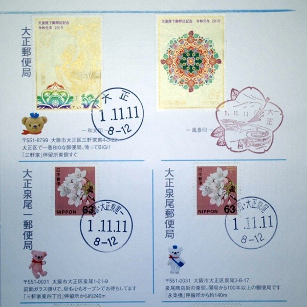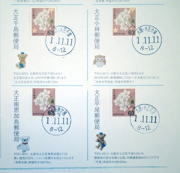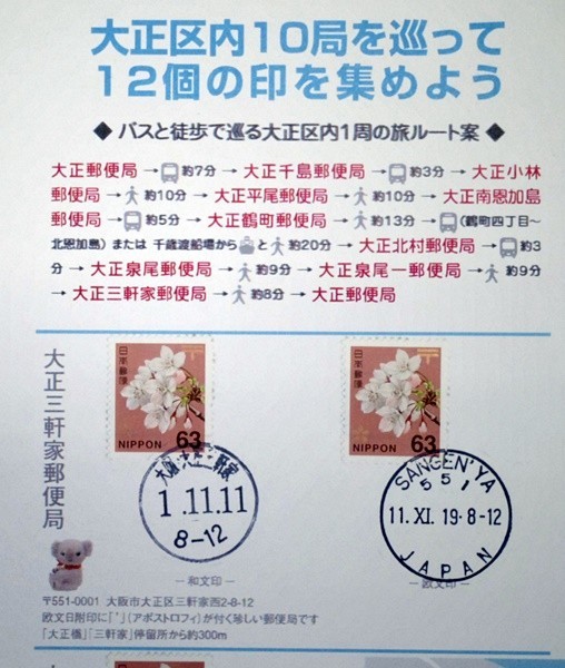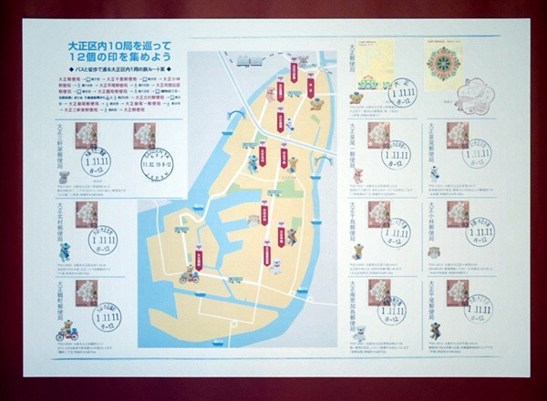 令和元年 1.11.11ならび記念 大阪市大正区内10局12印 「ぶらりスタンプ帖」