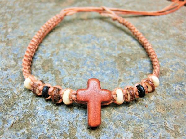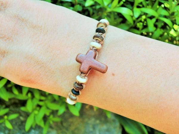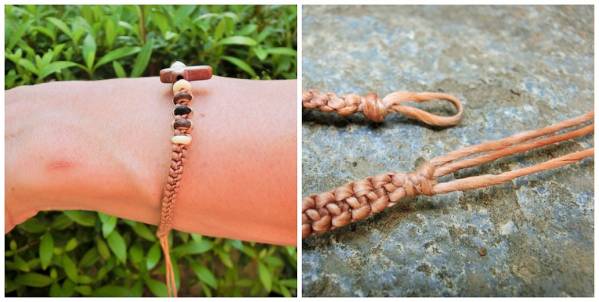 肌馴染みが良いオイルレザーとクロス&ビーズのかわいいブレスレットです