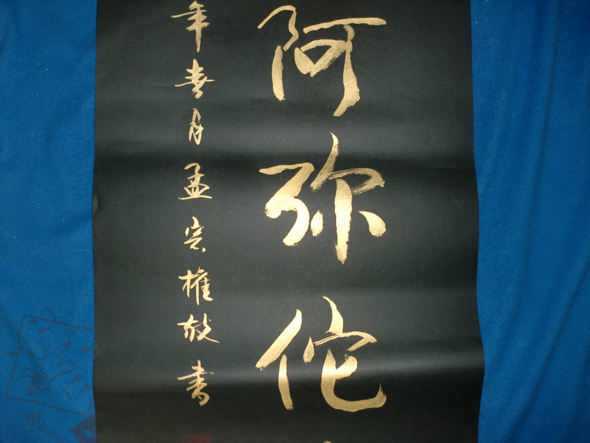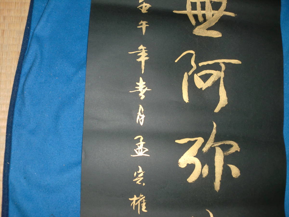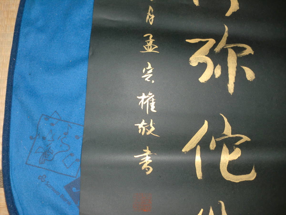 【模写】 まくり 中国  孟宗権 紺紙金泥 トテモ綺麗で洒落た六字名号 美品