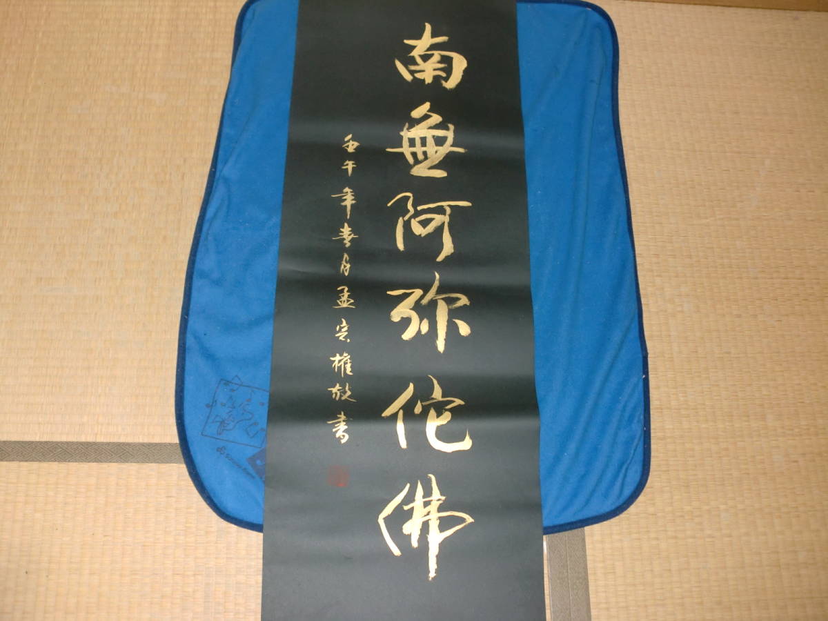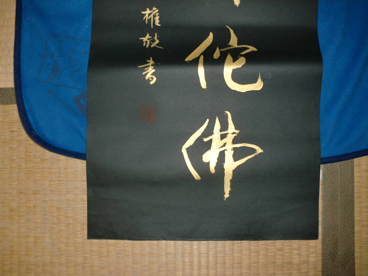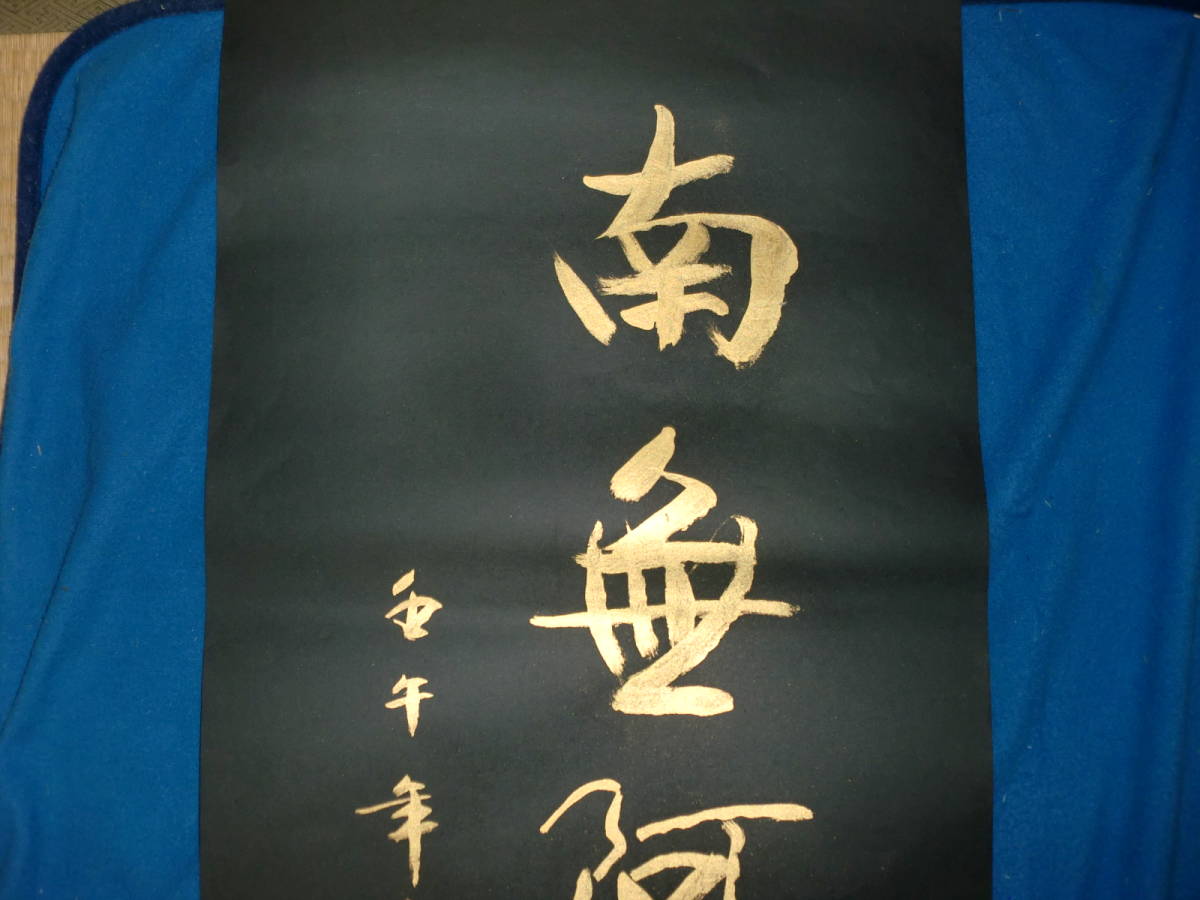 【模写】 まくり 中国  孟宗権 紺紙金泥 トテモ綺麗で洒落た六字名号 美品