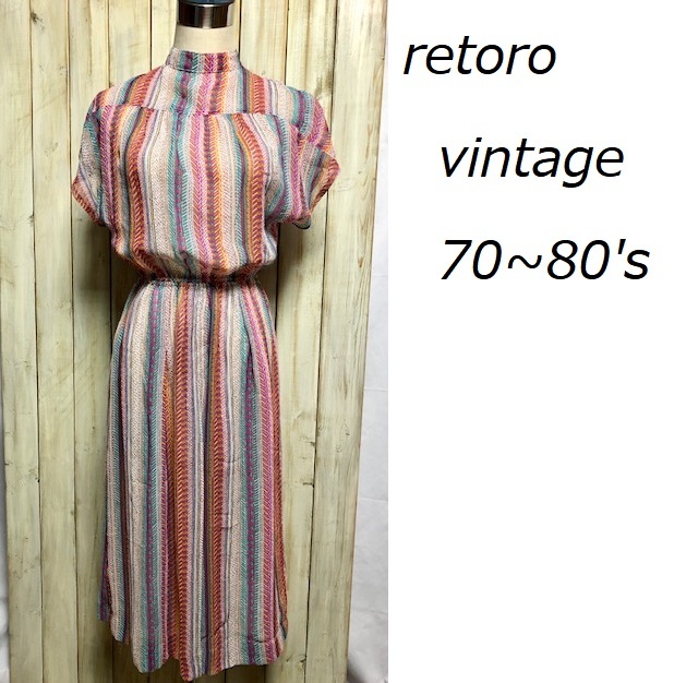 昭和レトロ 70's~ ヴィンテージ レトロシフォンワンピース 9号 レトロモダン 国産レトロ ★43