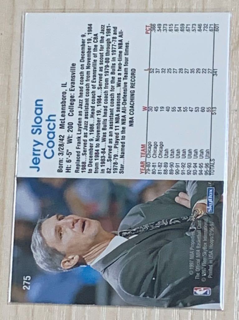 NBA Trading Card Jerry Sloan NBA Hoops SkyBox 96-97 ジェリースローン ユタジャズ Utah Jazz 90年代 The Last Dance 画像転載禁止