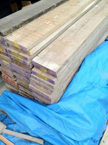 古材のフローリングや古材で作られた家具などに用いられる事も多くなって来ている貴重な中古足場板です。