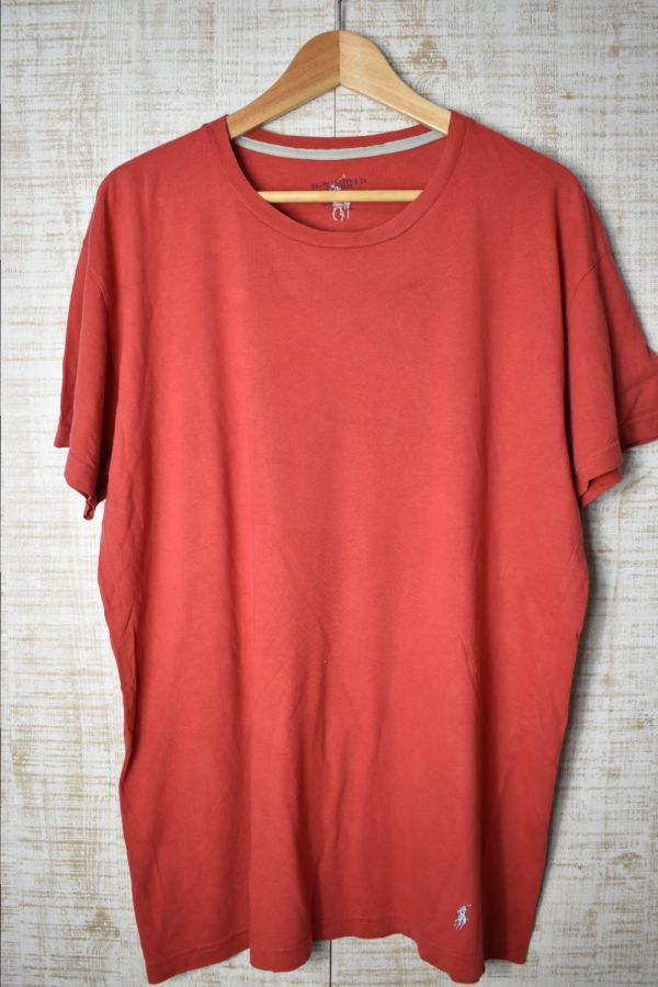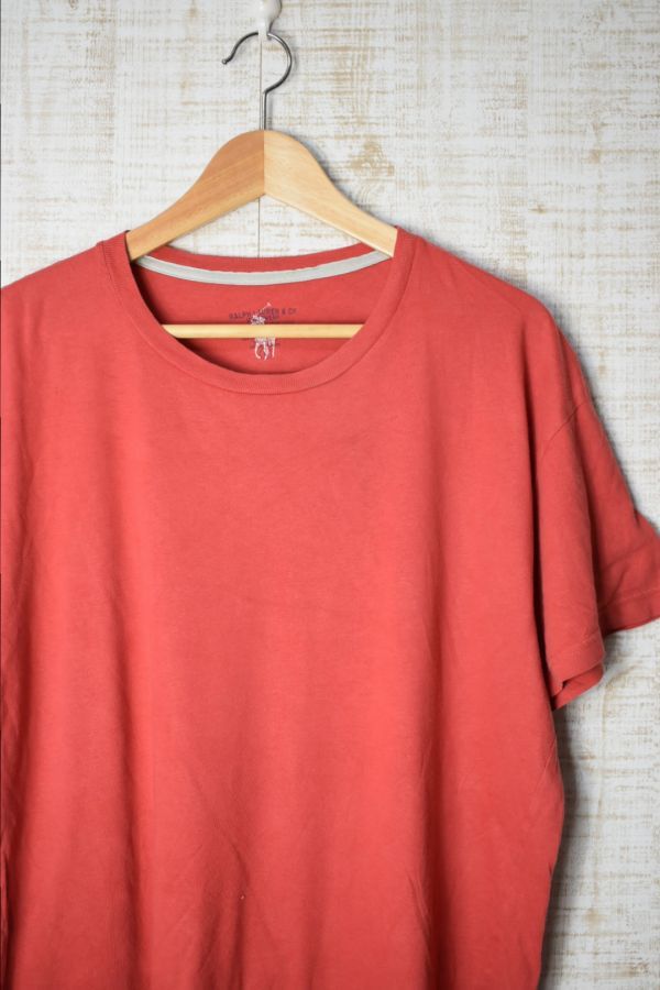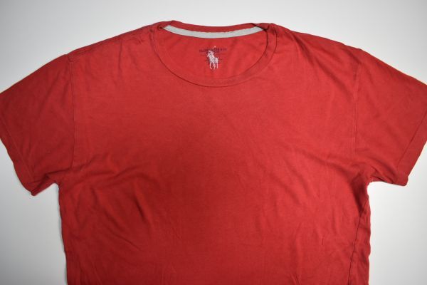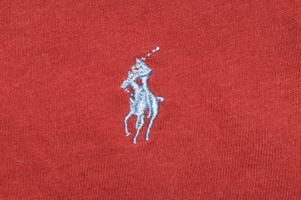 ●US USED Ralph Lauren ラルフローレン Tシャツ ポニーロゴ刺繍 レッドオレンジ 赤系【L】