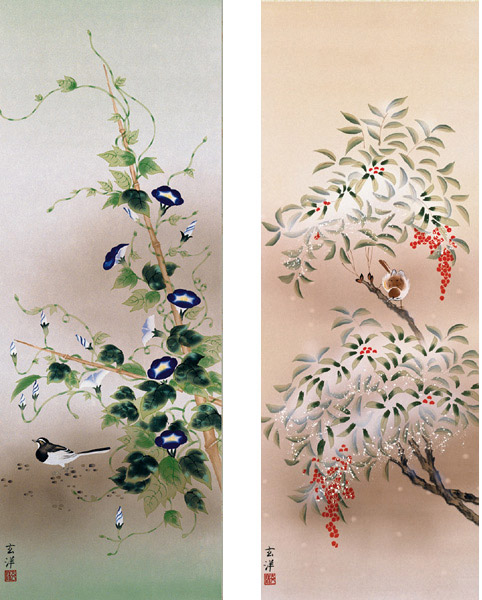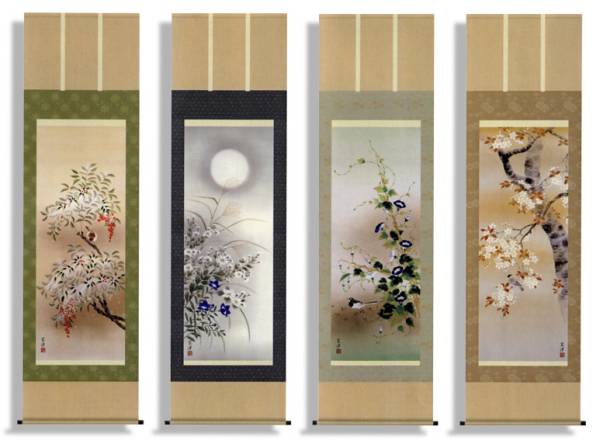 技法版画 発送ゆうパック140サイズ ◆年中掛けにお勧めする掛け軸は 「山水」「開運」「神社掛」などが代表的なものです。 ◆行事によってお盆やお彼岸、法事ごとに掛ける掛け軸は 「仏掛」「六字名号」「観音様」 ◆お正月やおめでたい時に掛ける「祝掛」として掛ける掛け軸は 「高砂」「旭日」「赤富士」 ◆節句に掛ける掛け軸は 「立雛」「武者」「天神様」 ◆季節に合わせた掛け軸は 「花鳥図」などいろいろです