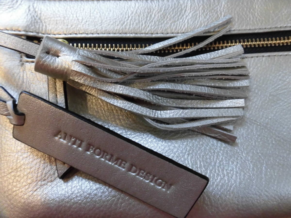 美品★アンチフォルムデザイン Antiforme-design レザーウォレットバッグ ★ポシェットバッグ ゴールド色