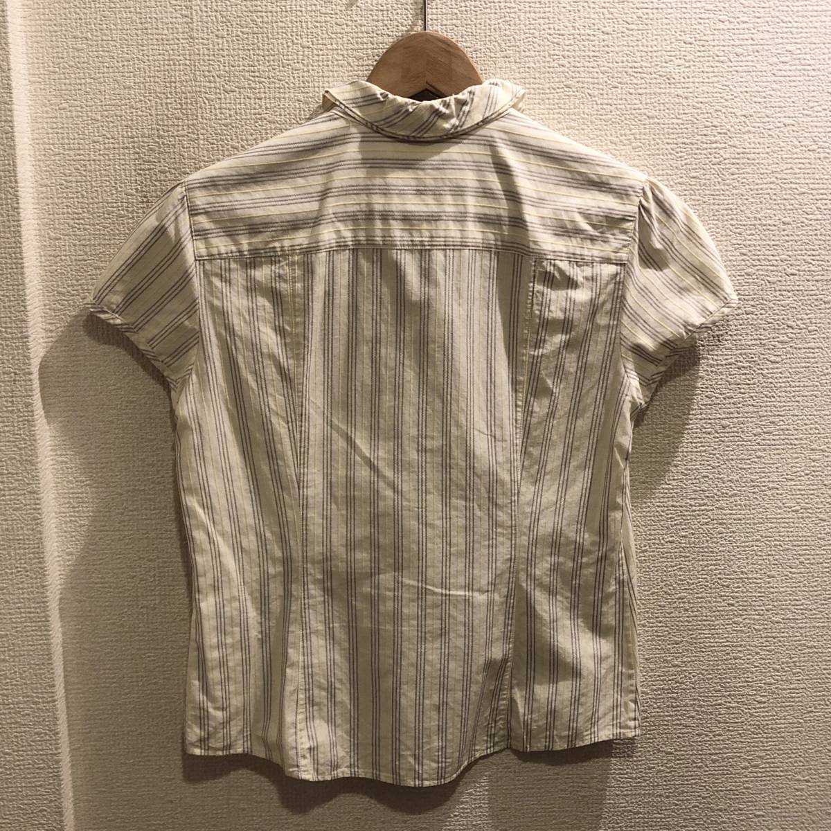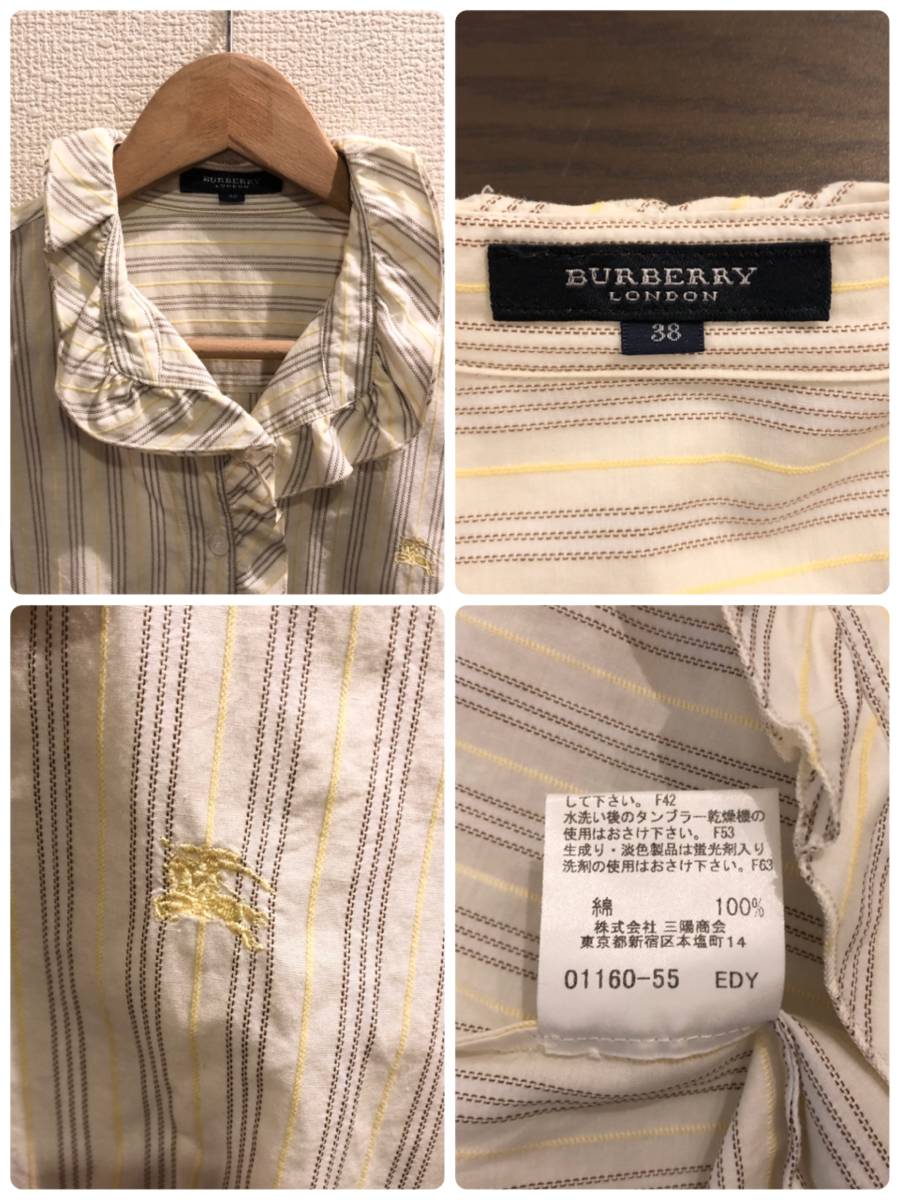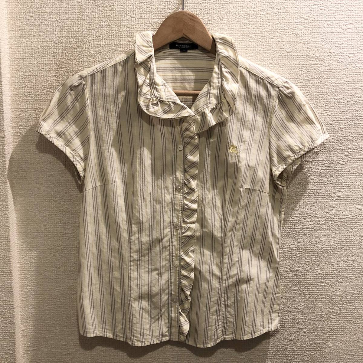 バーバリー BURBERRY ロゴ刺繍ストライプ柄シャツ38/フリル調デザイン