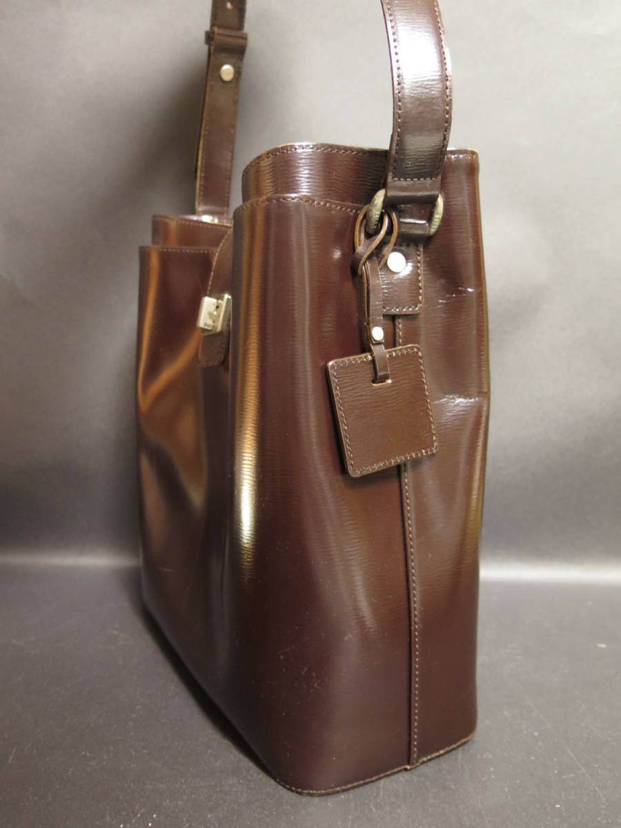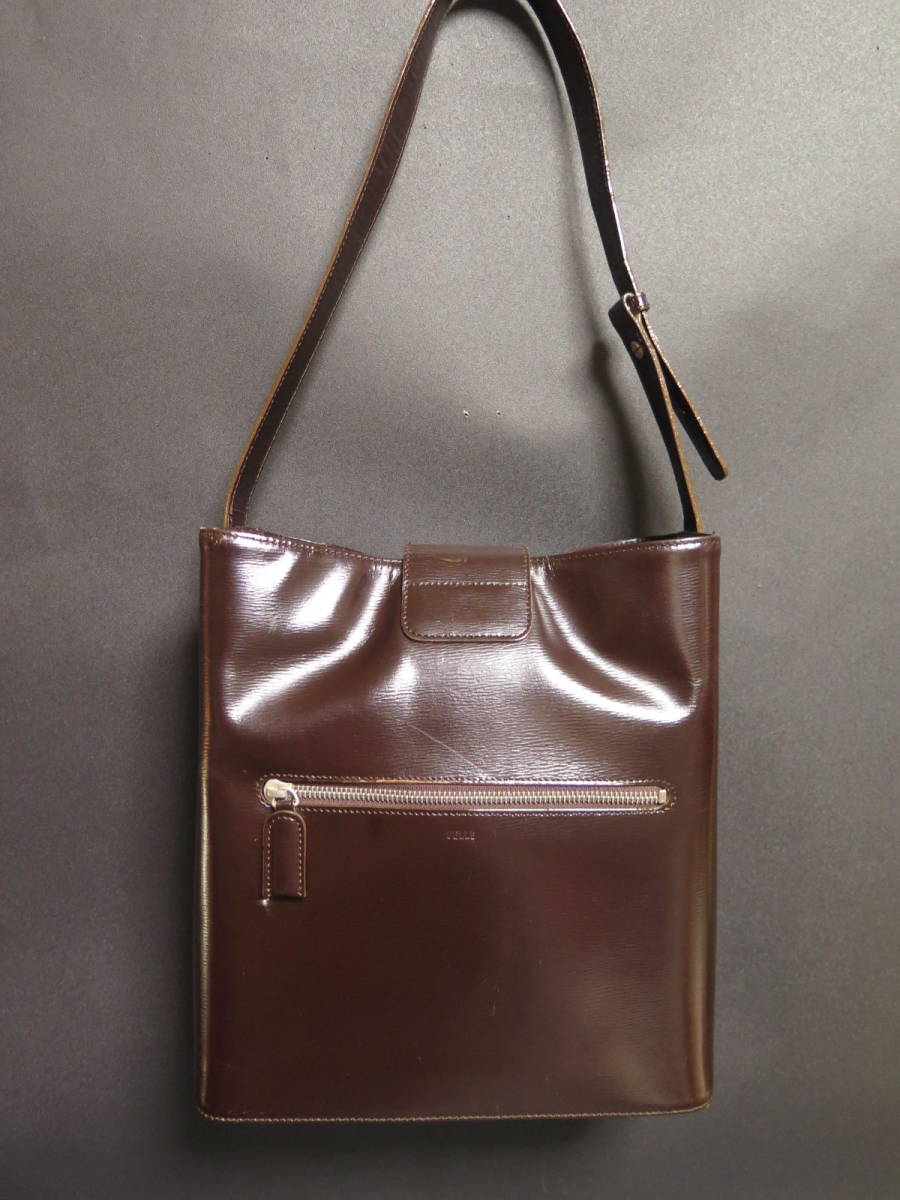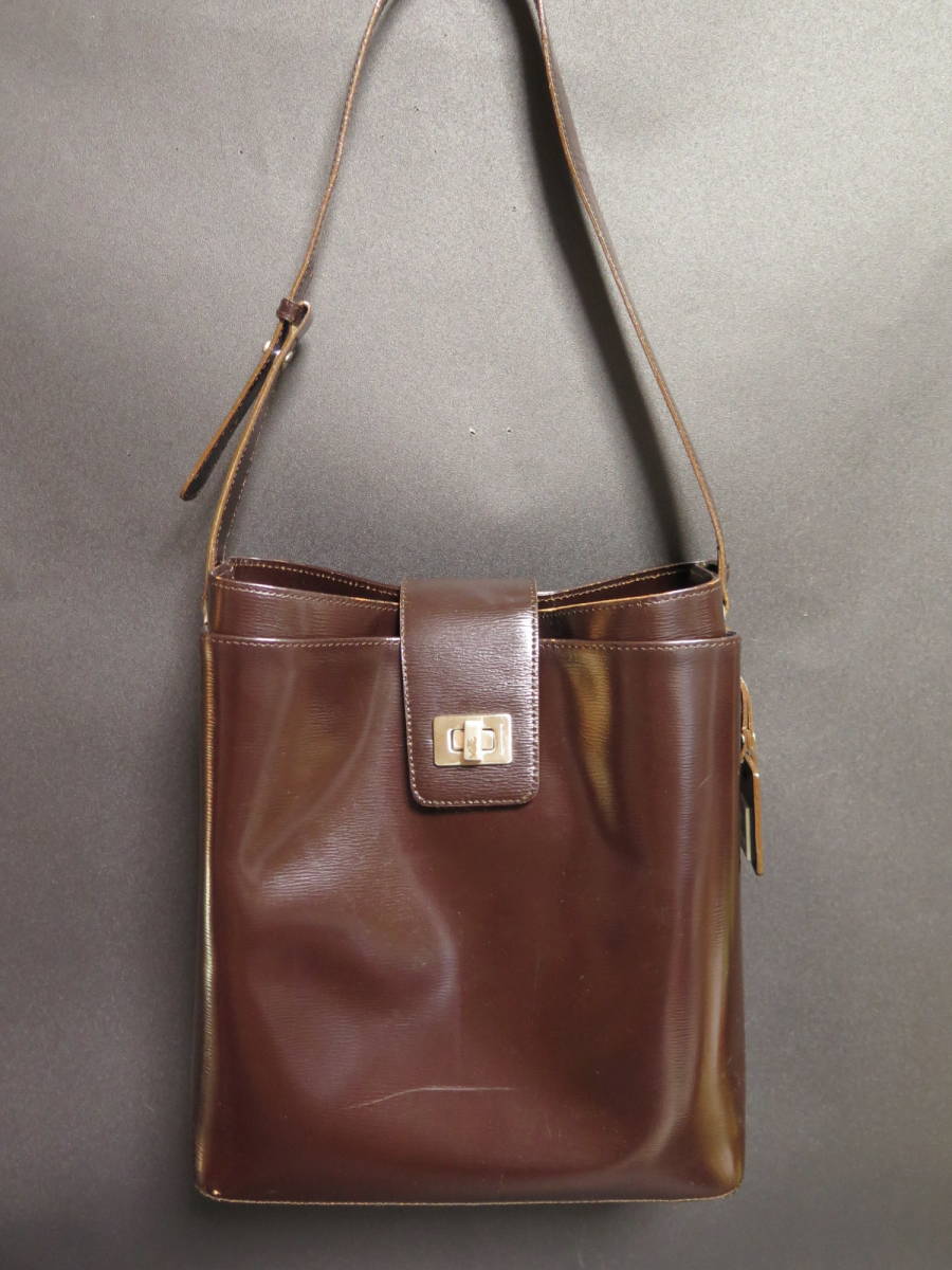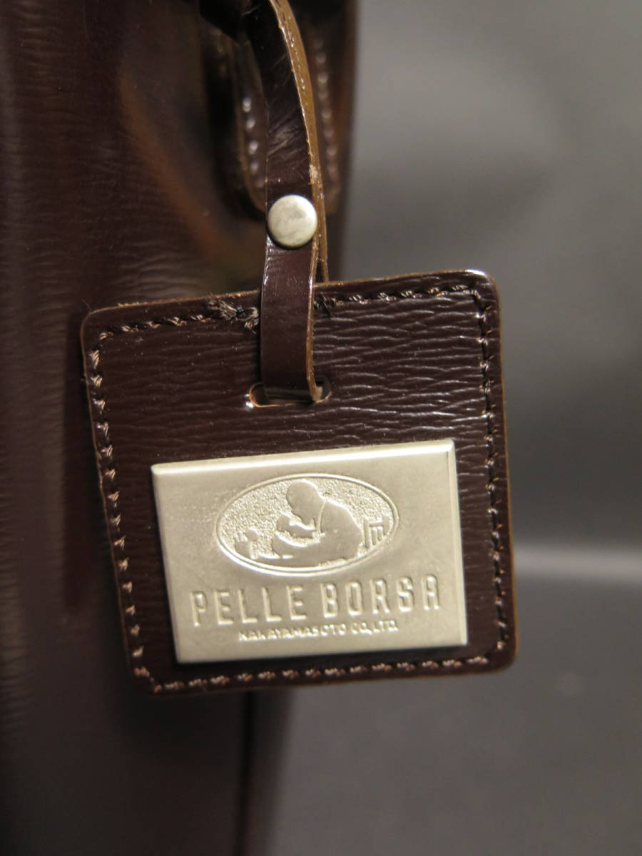 中古品 PELLE BORSA ペレボルサ レザーショルダーバッグ ブラウン 茶