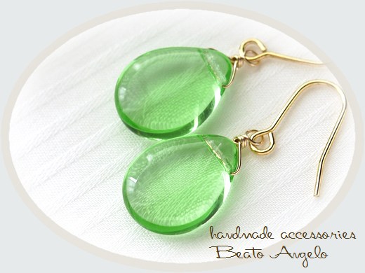 ◆+angelo+K14GF チェコ 洋梨ドロップの一粒ピアス(p-032)ペリドット ライトグリーン シンプル 大人 チタン 樹脂 イヤリング