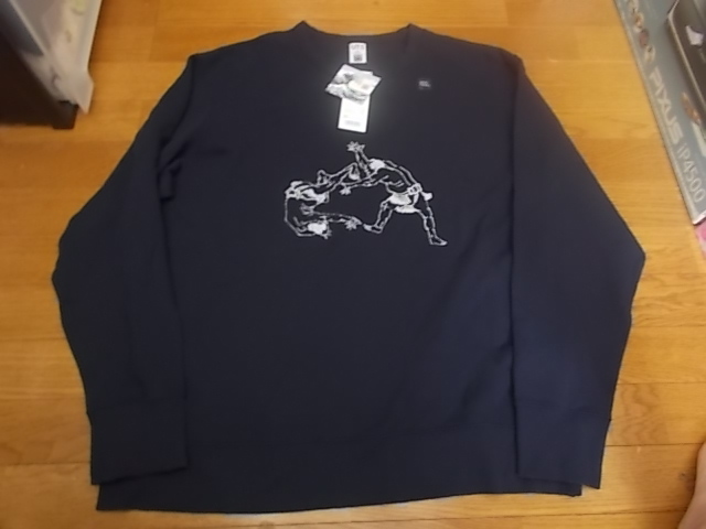 | 商品説明 | ホクサイブルー 相撲 スウェット トレーナー 新品タグ付属ありです。 サイズ表記3XL 着丈74センチ 身幅65センチ 袖丈62センチ |
