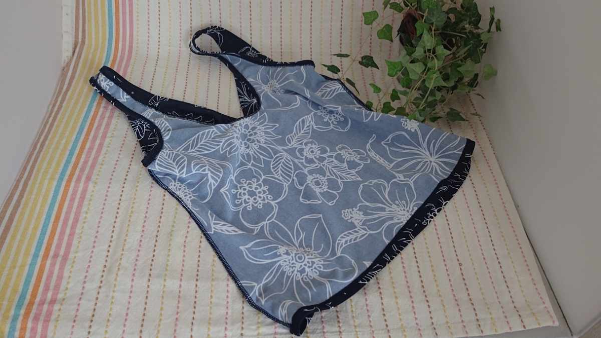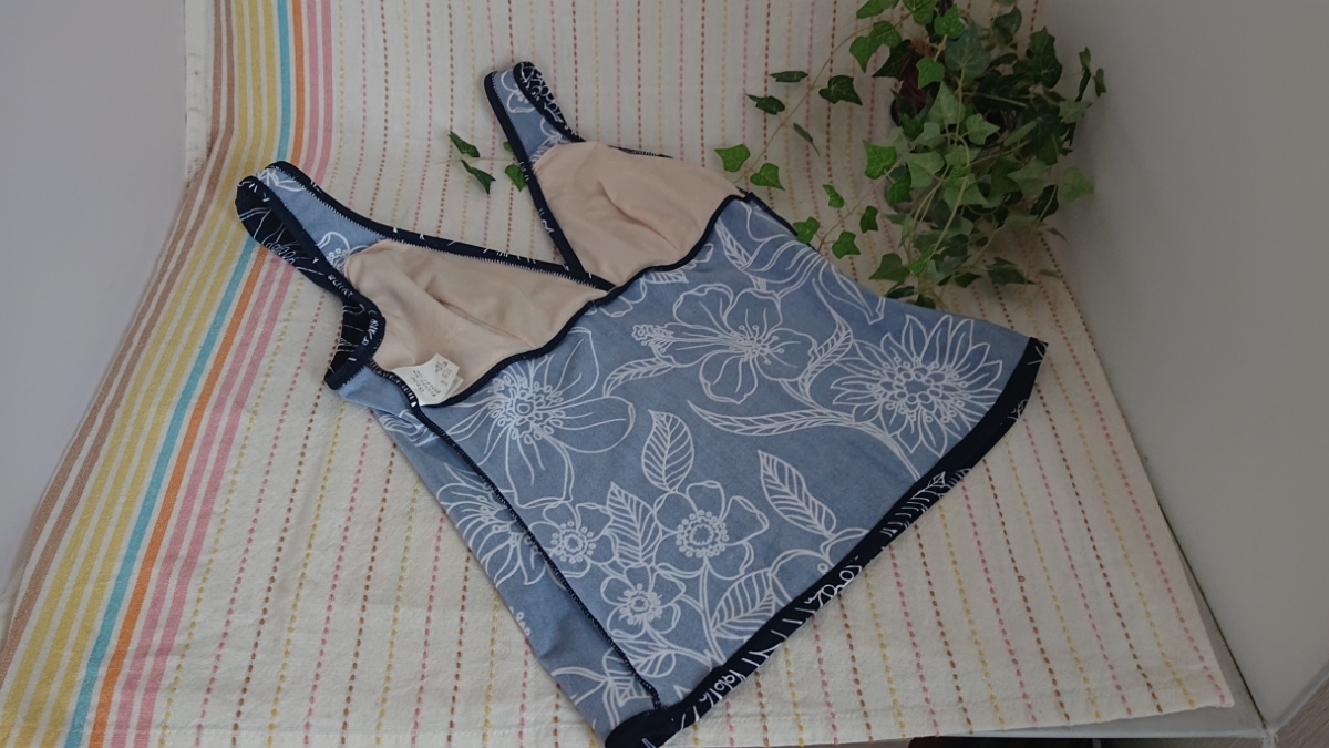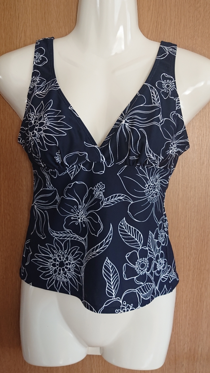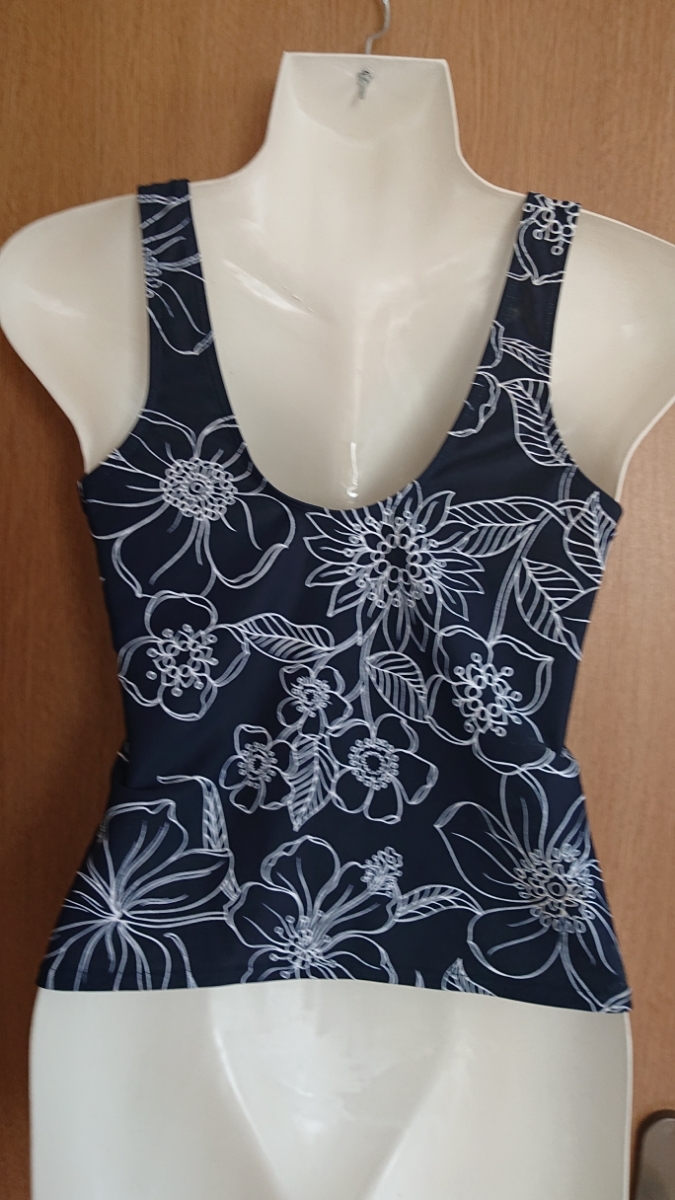 紺系花柄のタンキニ水着・上です