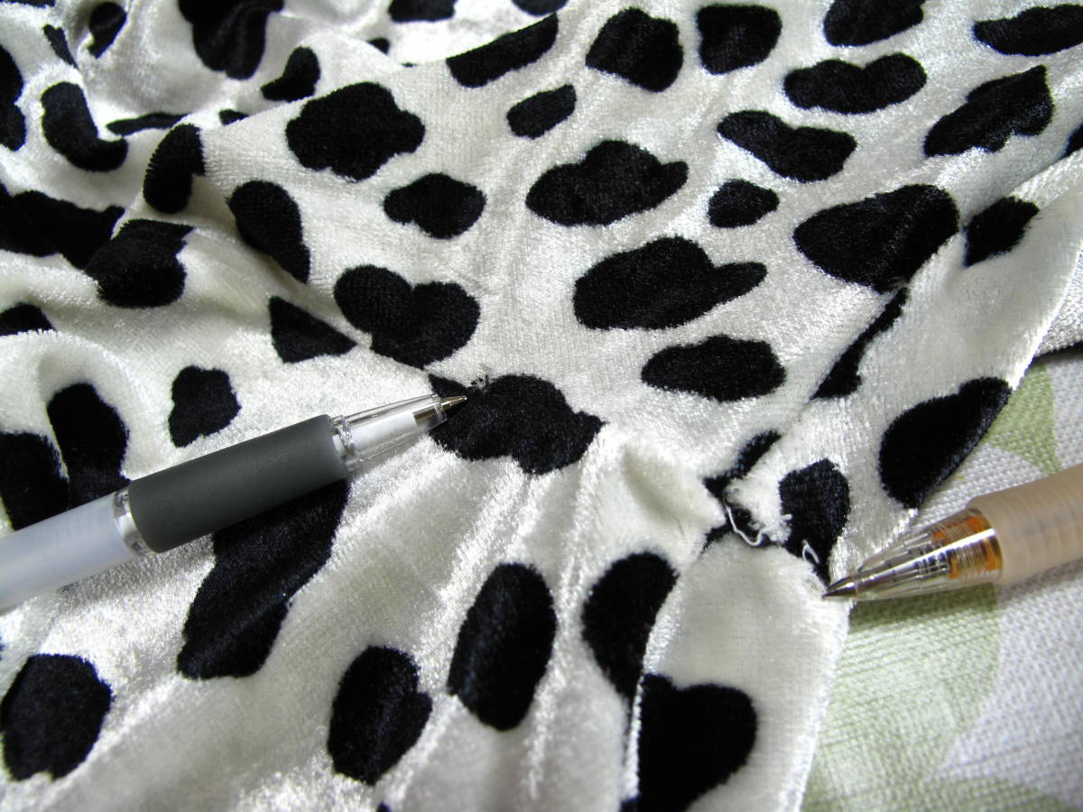 黒の牛模様のパンツのまたとお尻の縫い目に穴と糸のほつれがあります。写真でご確認下さい。