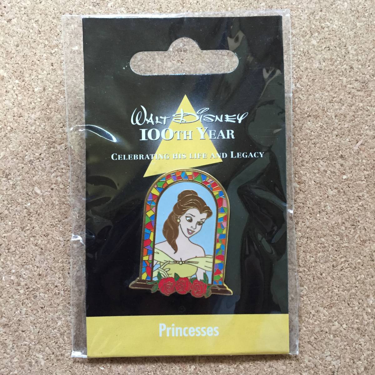 ディズニーストアで販売されていたウォルト・ディズニー 生誕100周年、美女と野獣/ベルのピンバッジ(台紙付き)です。