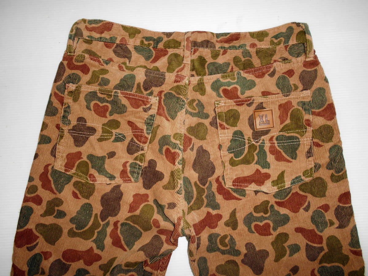 XLARGE エクストララージ カモ柄 コーデュロイパンツ サイズ34 です。 (株)ビーズインターナショナル の正規品です。素材はコットン100です。フロントはジッパーフライです。