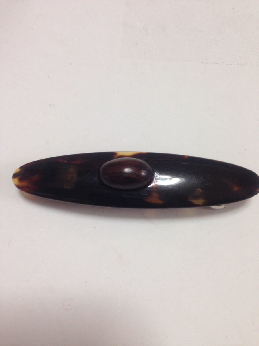 大きな本鼈甲と木製飾りの髪留めです、髪留めのサイズは20×95ミリ、裏側に少々傷は一箇所ありますが、表面にはなく美品です