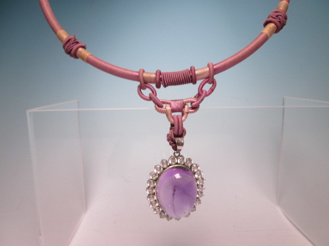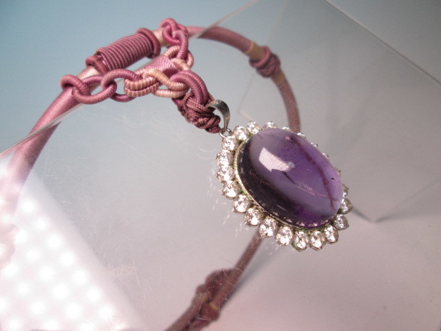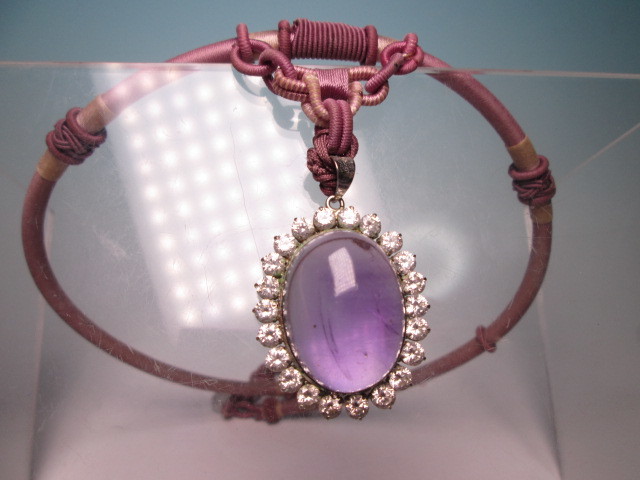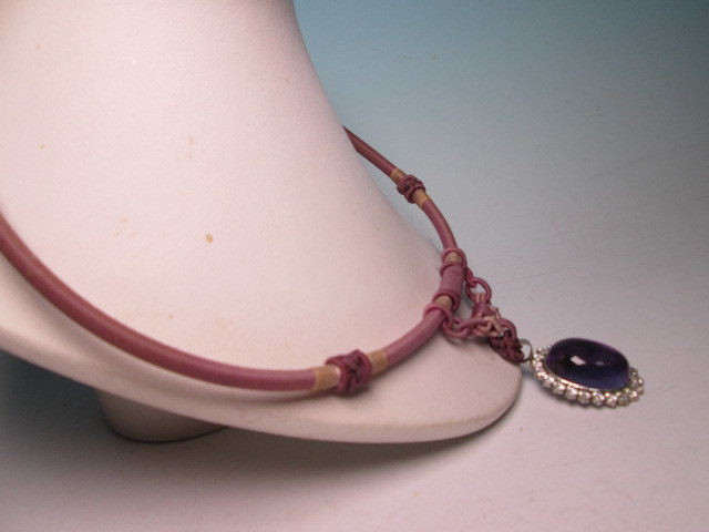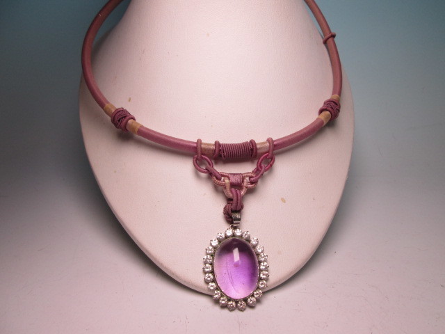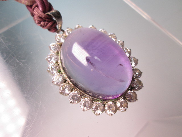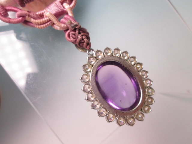 ☆SILVER 大粒なアメジストラインストーン飾りのネックレス