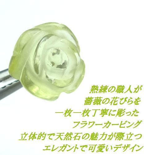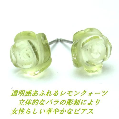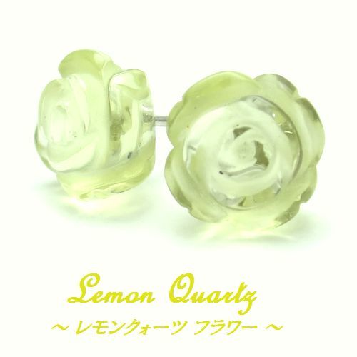 K10WG レモンクォーツ フラワーカービング ピアス バラ 花 ローズ ジュエリー ホワイトゴールド 水晶 花 かわいい 箱付き