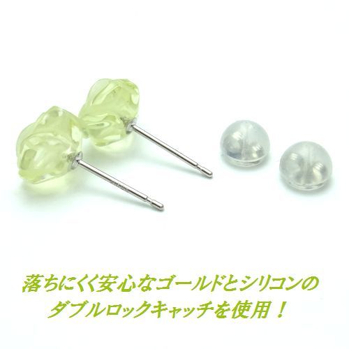 キャッチは、ゴールドとシリコンのダブルキャッチになっているので、落ちにくく安心してお使い頂けます。