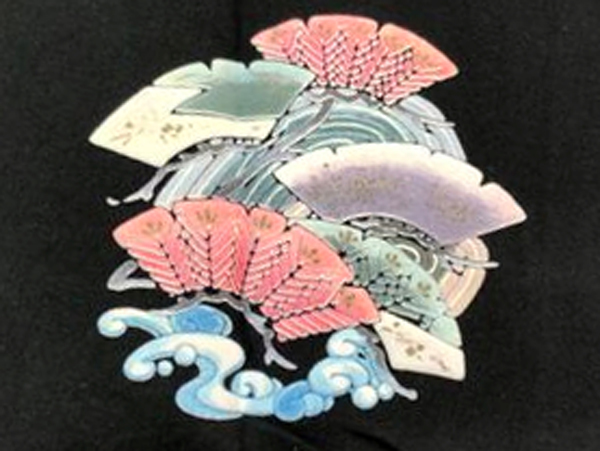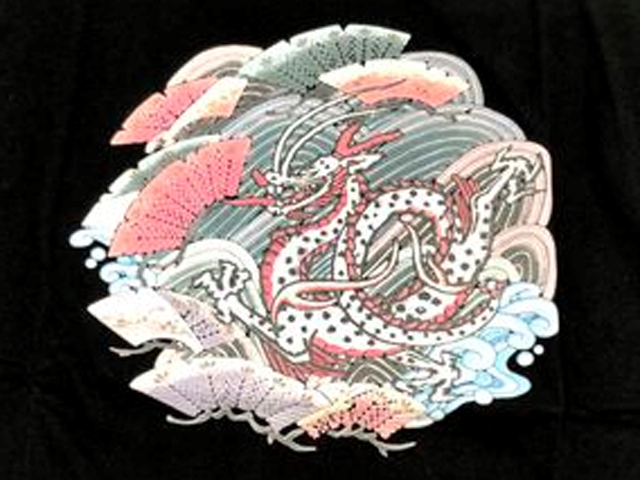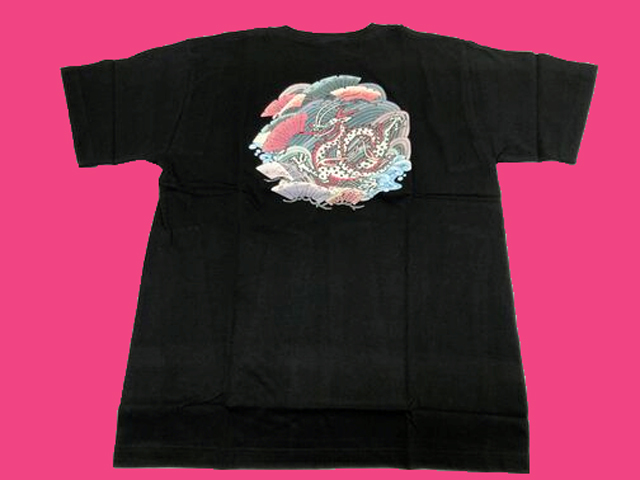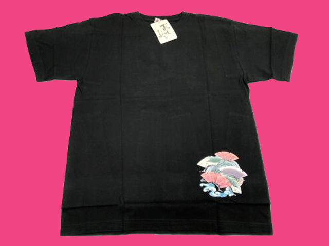 むかしむかし 和柄 半袖Tシャツ 【波扇竜】黒 Mサイズ