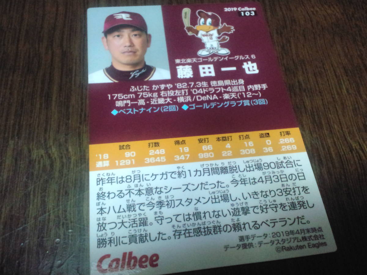 [同梱可]★藤田一也(東北楽天ゴールデンイーグルス)★レギュラーカード(103)☆2019年カルビープロ野球カード第2弾