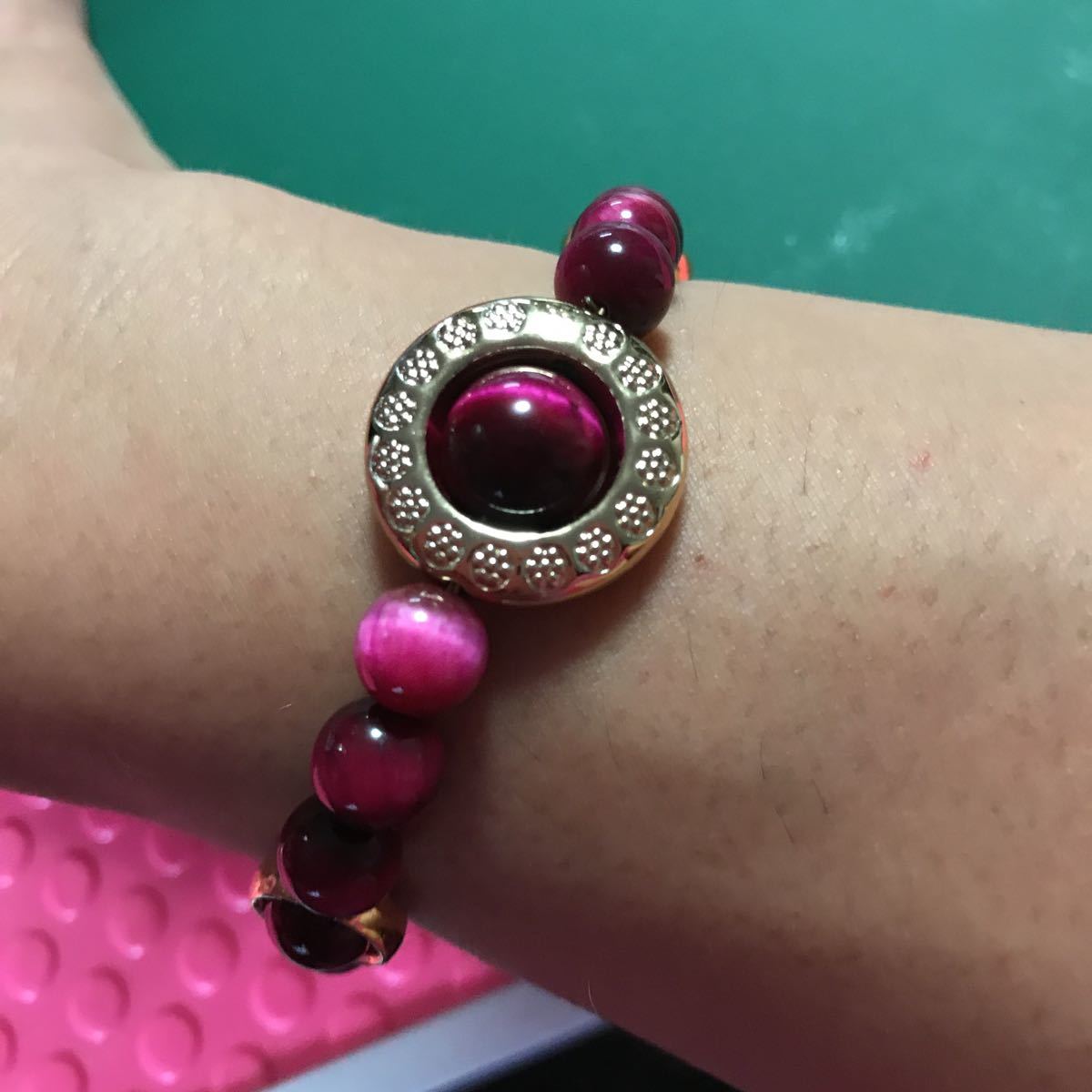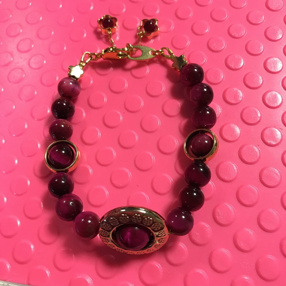 タイガーアイは10ミリ8ミリ6ミリ使用しております,留め金は回転式ですので取り外ししやすいです。お花リングやお花パーツやリングパーツ変色しない上質の物使用しております。細部にまでこだわりました。腕に付けただけでとても華やかになります