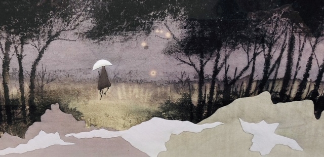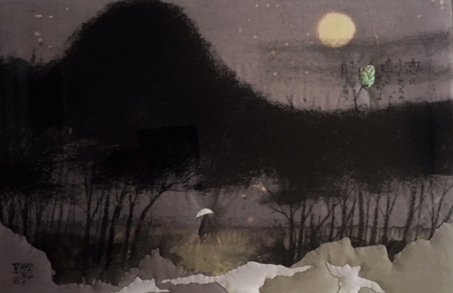 札幌在住の作家、植田獏 作の種田山頭火の句をイメージしたキルト絵です。