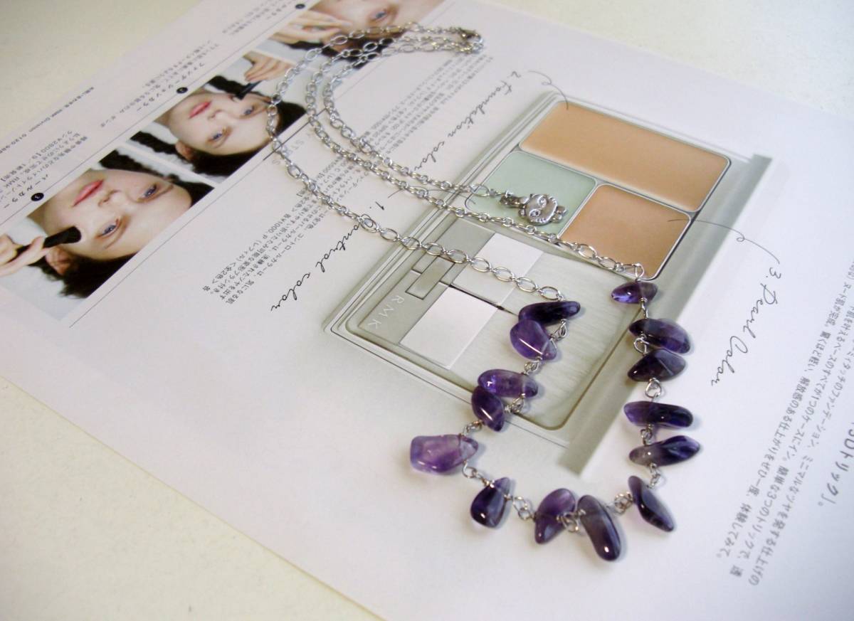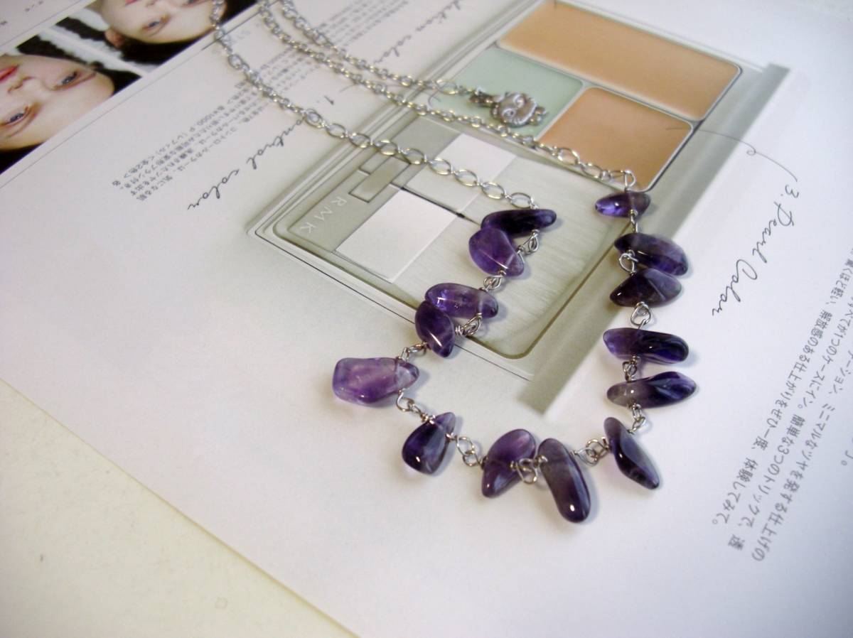 ロマンチックを追いかけて・・シリーズです♪アメジストの魔法・・繊細なアメジストのネックレスです♪12ミリから14ミリ位までのペダル型のアメジストは合 わせやすいシンプルなデザインです♪長さは全長80センチ位で調節自由です♪シンプルなデザ インなので長く着けて頂けると思います♪♪ハンドメイドをご理解頂いてノー クレーム、ノーリターンでお願いします