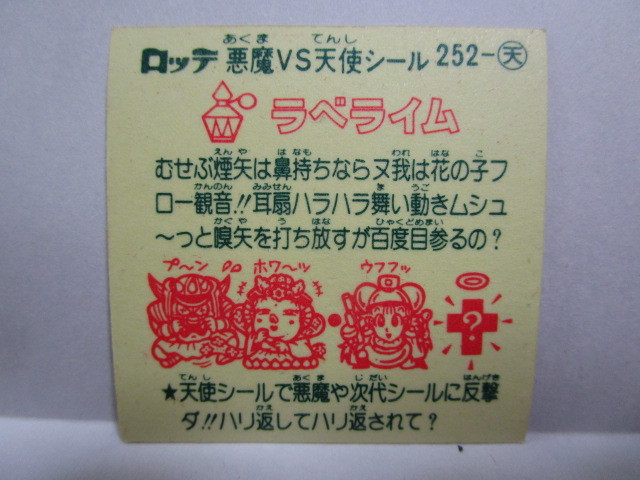 ビックリマンシールです。 ラベライム(天使)No.252 汚れあります。 |