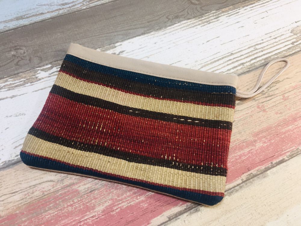 トルコのオールドキリム絨毯を裁断して作られたポーチです。