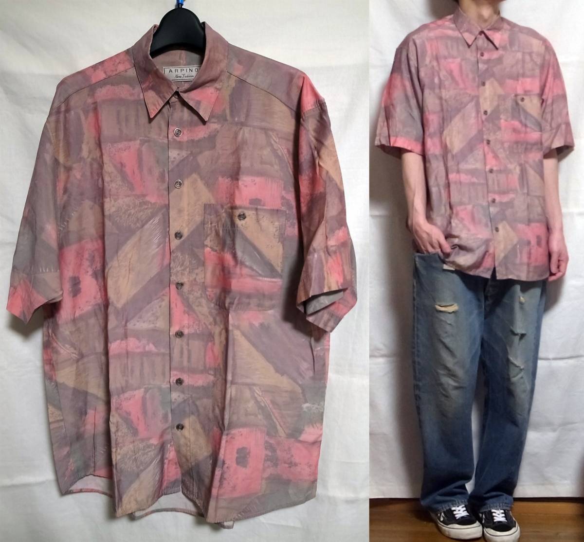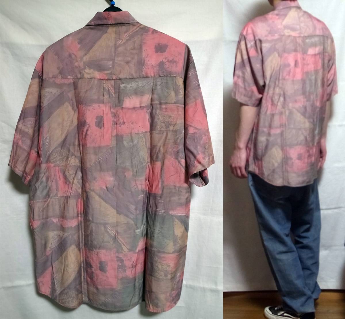 ご回覧ありがとうございます。お手数ではございますがトラブルの元になりますので、説明文は最後までお読み下さい。 着画がある場合のモデルは177×62位の男性です。 こちら一点物古着の総柄アート柄半袖シャツになります。サイズ表記はLです。 デザイン、カラーリングともにとっても素敵です。ヴィンテージシャツになりますので希少性も高く人と被ることはありません。一期一会の出会いをお楽しみ下さい。 女性がオーバーサイズで着られても絶対に可愛いと思いますので彼女との兼用やプレゼントとしても喜ばれるかと思います。 状態はUSEDですが良品です。普段からコーディネートに古着も合わす方なら問題無いかと思います。経質な方はご遠慮下さいませ。 サイズ表記 L 実寸平置き(背中心着丈 81cm位、脇下身幅 58cm位、肩幅 51cm位、袖丈 27㎝位) ※着画モデルは177×62位の男性です。 特殊なアイテムの素人採寸ですので多少の誤差はご了承の上ご参加下さい。 |