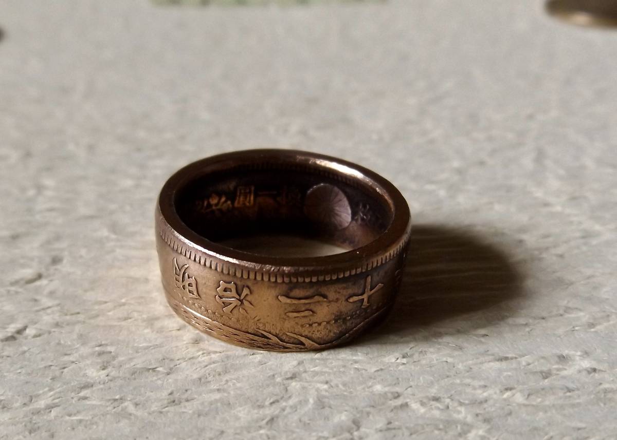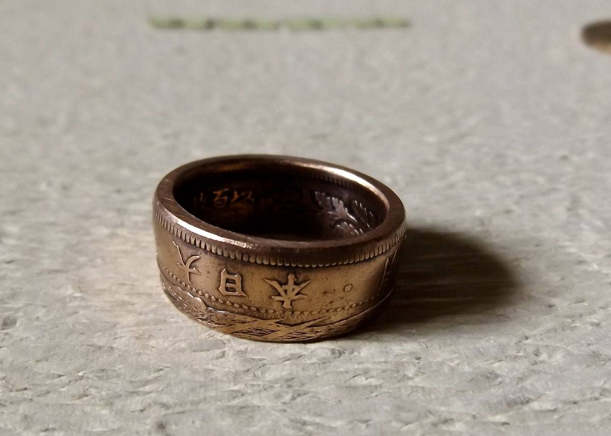 17号サイズ コインリング  指輪 新品 未使用 送料無料  (9537) ハンドメイド アンテーク 古銭 貨幣 硬貨 手作り 菊花紋章