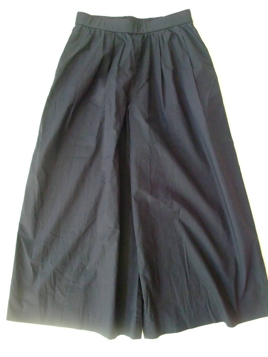 平置きで、ウエスト31㎝(ゴム入り)、ヒップ57㎝、股上34㎝、股下54㎝、渡り幅40㎝、裾幅39㎝。