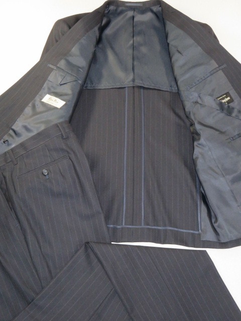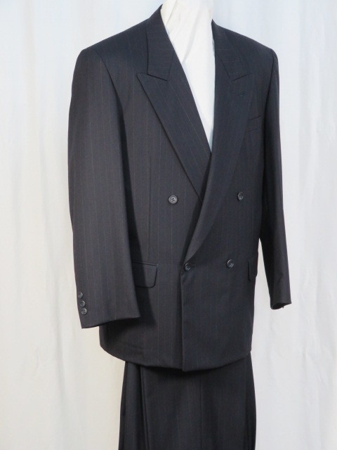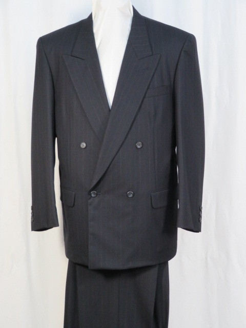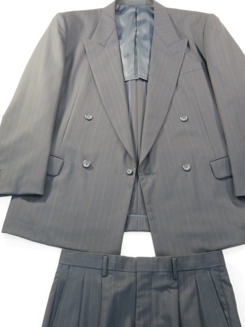 ★☆ L-82 ダブル4B×1P衿スーツ 新品 春夏 紺系縞 日本製 ☆★