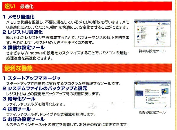多彩な機能を搭載したパソコンチューンナップソフトです。