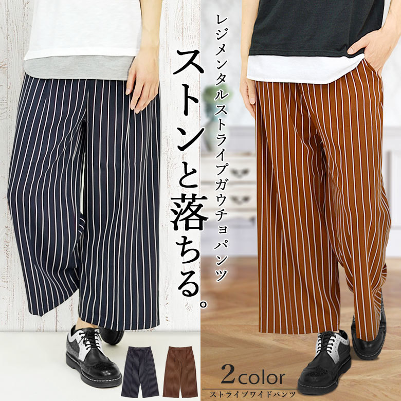 レジメンタルストライプ/ワンタック使用/ワイドシルエット/ゆったりシルエット/