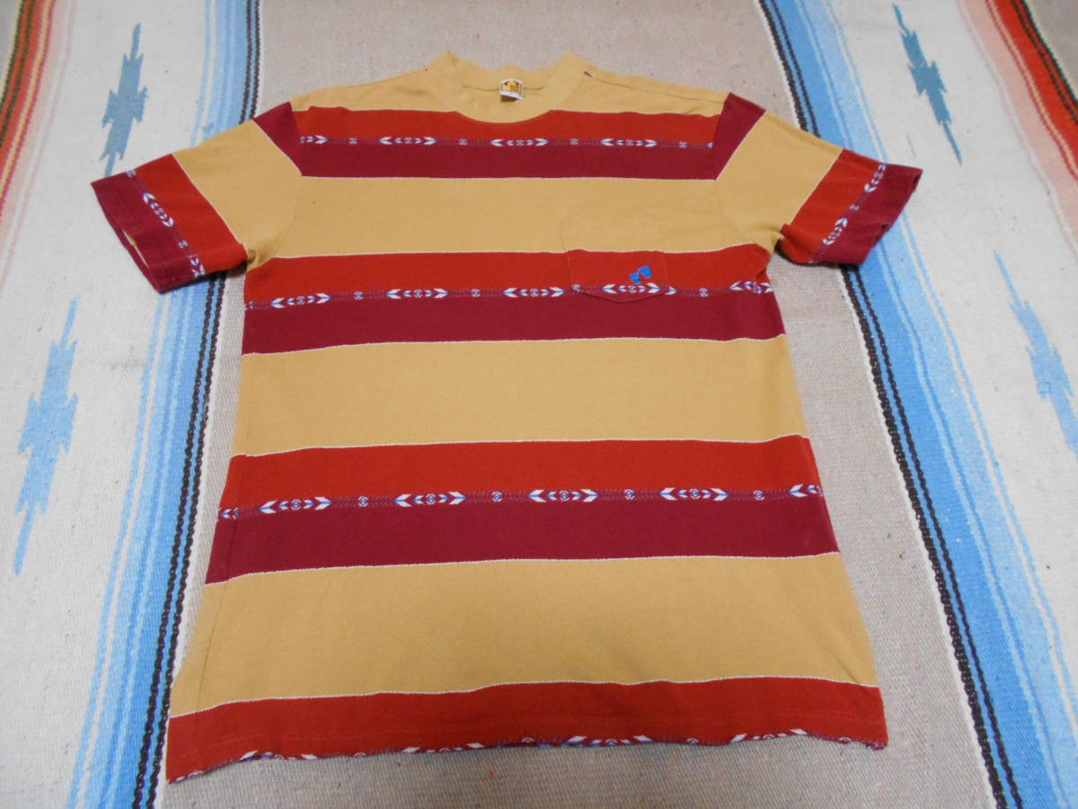 1970S ビンテージ ターコイズ幾何学模様 ボーダー Tシャツ